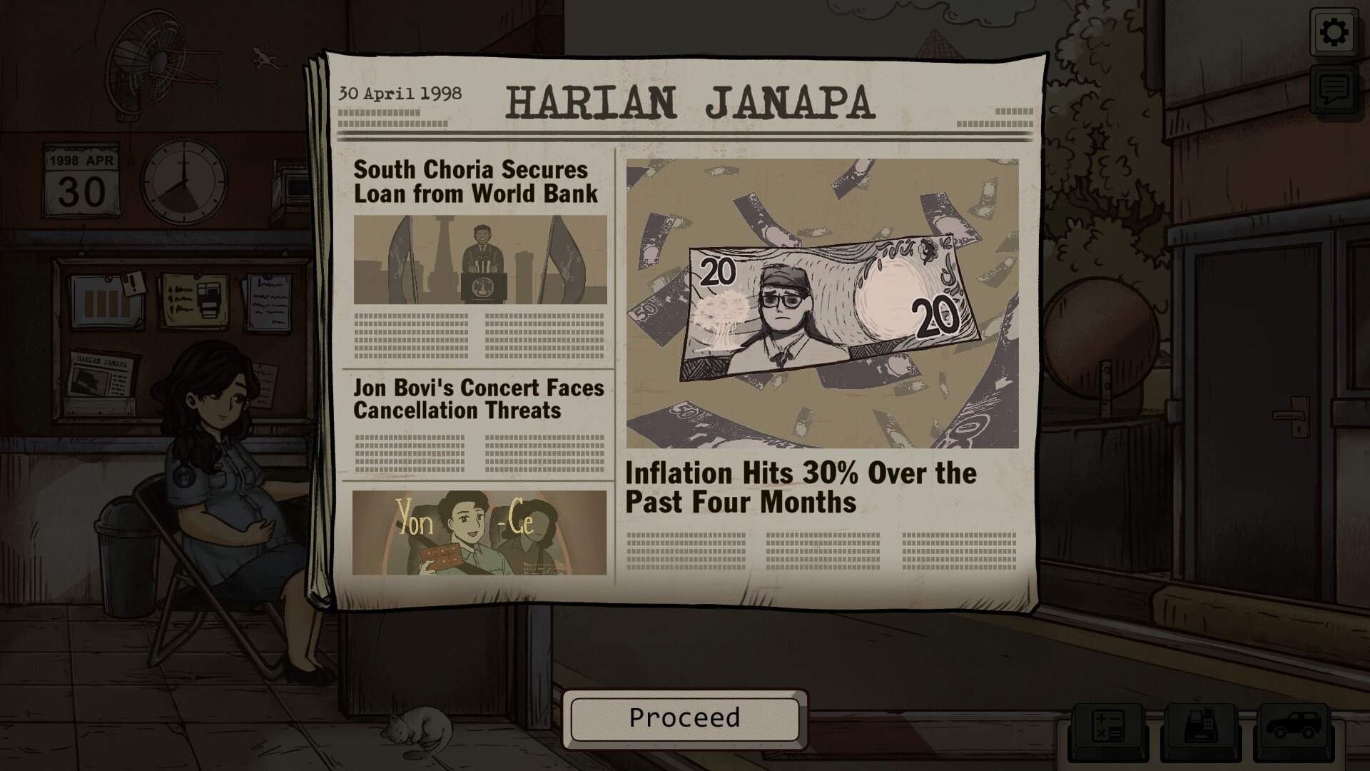 De basis van de gameplay is erg simpel, zo lijkt het. Jij bepaalt voor wie de slagboom opengaat, met alle gevolgen van dien. Toch komt er veel meer bij kijken dan alleen dat. Er komen mensen aan je poort met schrijnende verhalen of te weinig geld. En tja, wat doe je dan? En dit allemaal natuurlijk wel binnen een bepaalde tijd. De dag begint met de voorkant van een krant. Hierin staan verschillende verhaaltjes, soms ook gebaseerd op de keuzes die je de dag ervoor gemaakt hebt. Dit geeft je net een beetje extra dat gevoel dat je keuzes er ook echt toe doen in het spel.