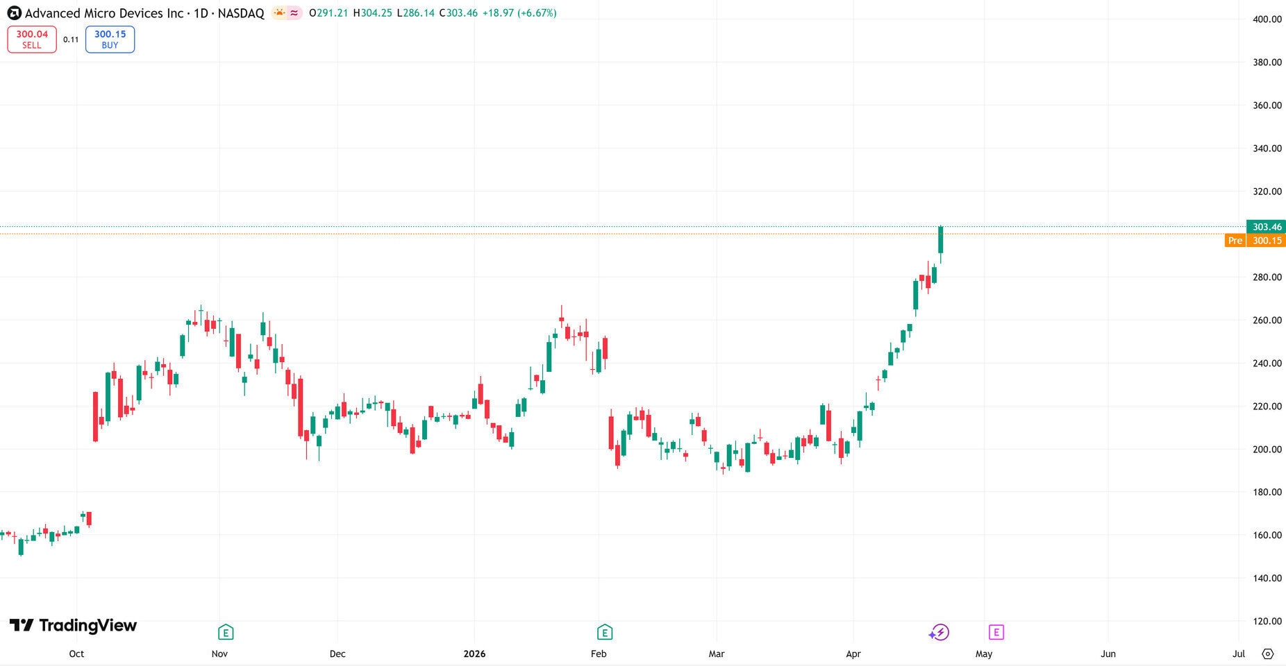 De aandelen van AMD hebben de afgelopen maanden een aanzienlijke stijging doorgemaakt. Op het moment van schrijven bereikte de koers een recordhoogte van $303,46 en de marktkapitalisatie bedraagt bijna een half biljoen dollar, om precies te zijn $494,74 miljard. Historisch gezien heeft AMD moeite gehad om het niveau van NVIDIA en, tot op zekere hoogte, Intel te evenaren. Het bedrijf heeft echter een enorme ommekeer doorgemaakt met de uitbreiding van AI-datacenters. AMD presteert goed in de datacentersector met zijn EPYC-processors en Instinct MI-acceleratoren, en de aandelenkoers is deze stijgende trend gevolgd. Dit is de beste prestatie van AMD tot nu toe, ondersteund door een sterke huidige en toekomstige productportfolio die grote investeerders vertrouwen geeft in de activiteiten, financiën en uitvoering van de plannen van het bedrijf.