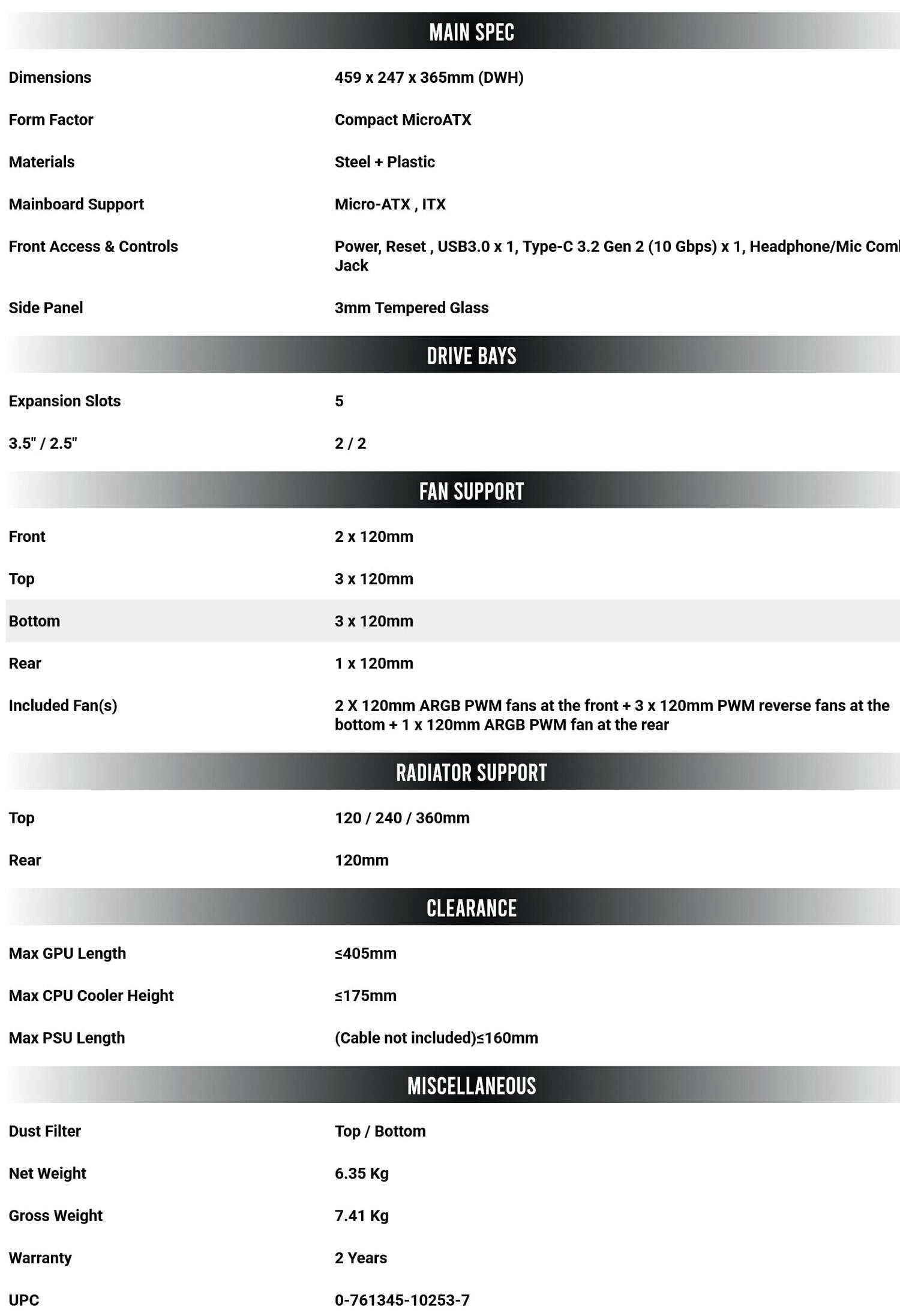 - Ondersteunt een 360 mm radiator aan de bovenkant en een 120 mm radiator aan de achterkant