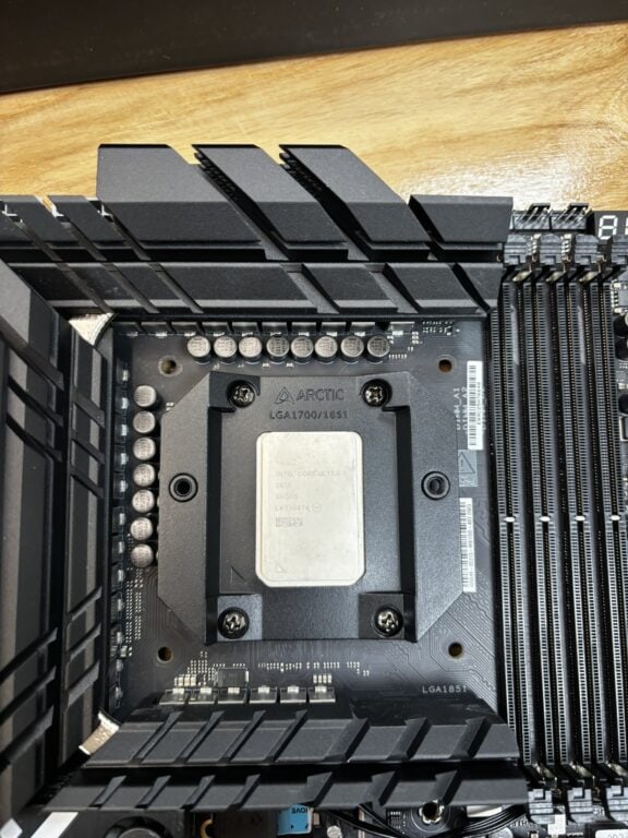 Voor deze review en bijbehorende test heb ik de ARCTIC Liquid Freezer III Pro 360 op een Intel-systeem geïnstalleerd, te weten een systeem met een LGA-1851-socket. Hiervoor heb ik het meegeleverde custom contactframe van ARCTIC gebruikt.