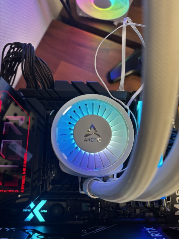 Voor deze test heb ik de ARCTIC Liquid Freezer III PRO A-RGB aangesloten met de enkele PMW-aansluiting, niet met de splitter waarmee de componenten apart geregeld kunnen worden.