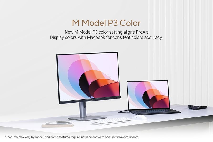 De nieuwe M Model P3-kleurinstelling is ontworpen om de kleurprestaties van het ProArt-scherm en de aangesloten MacBook op elkaar af te stemmen, voor perfecte consistentie tussen beide schermen. Dit is ideaal voor kleurkritische taken zoals fotobewerking, videoproductie en grafisch ontwerp.