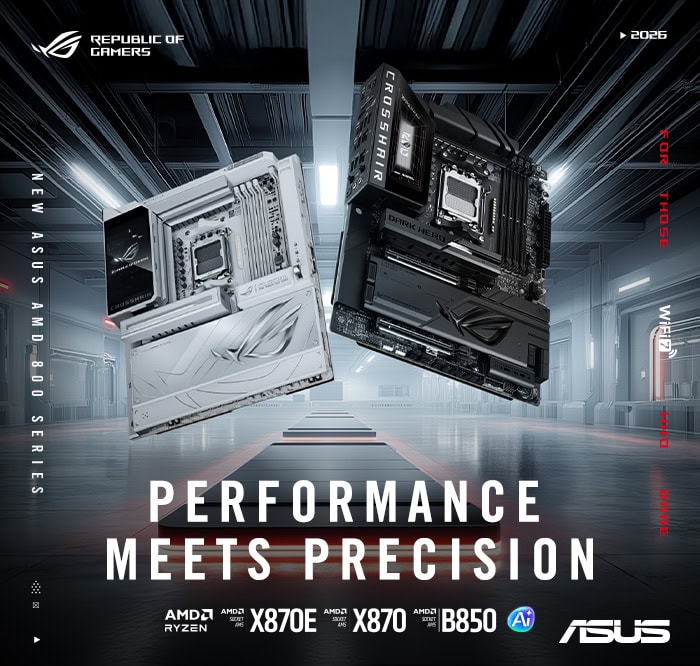 Op CES 2026 heeft ASUS vandaag een uitgebreide reeks nieuwe AMD-moederborden onthuld, waaronder ROG X870E-modellen en Neo-vernieuwde moederborden binnen de ROG Strix-, TUF Gaming- en ProArt-families voor X870E, X870 en B850. Deze modellen ondersteunen de nieuwste Zen 5 Ryzen™ 9000-serie processoren.