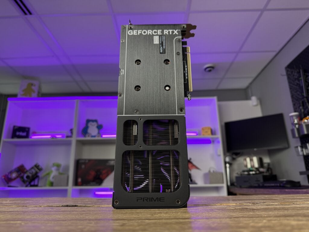 Ondanks de kleine TGP-verhoging van 20 watt, blijft de ASUS Prime GeForce RTX 5060 Ti 16GB GDDR7 OC Edition koel en stil. De videokaart is SFF-compatibel, voorzien van een dubbele BIOS.