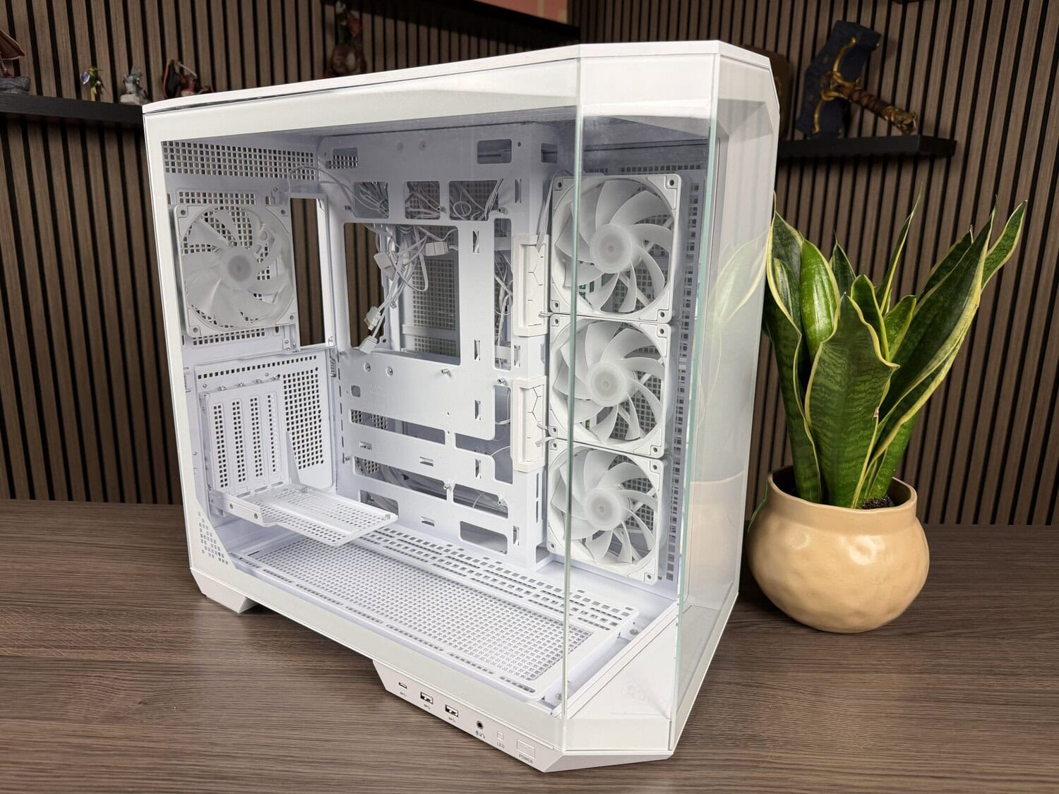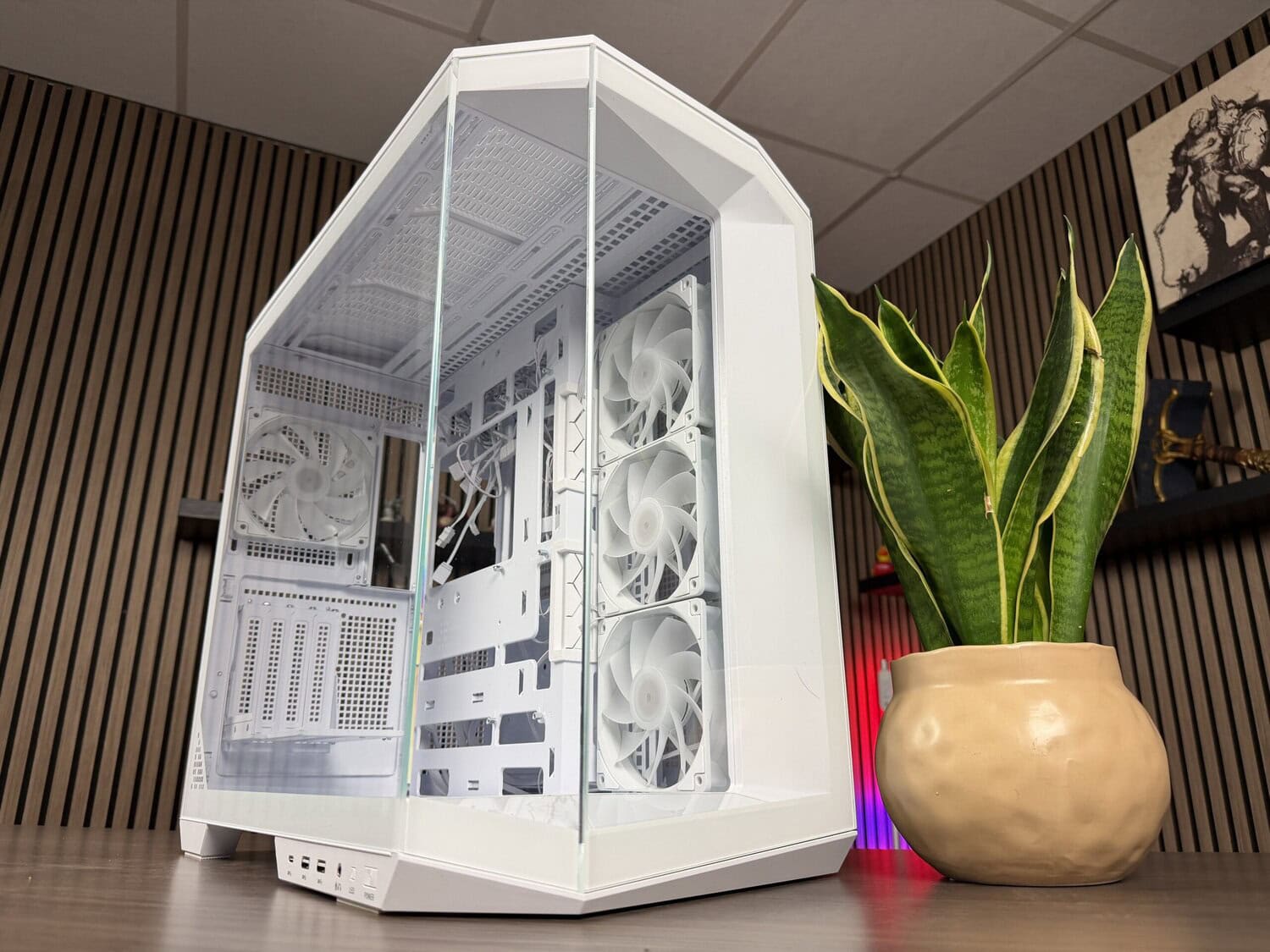 De behuizing is zwart (en wit) van kleur, heeft een gewicht van 8,66 kg en beschikt over vier 120 mm ventilatoren (1 aan de achterkant, 3 aan de zijkant) Grote grafische kaarten tot 39 cm passen probleemloos in deze behuizing. CPU-koelers tot 17,5 cm helpen mee om die optimale koeling te kunnen bereiken. Deze behuizing ondersteunt zowel 2,5" als 3,5" opslag en heeft een USB 3.2 Gen 1 en een USB-C 3.2 Gen 2×2 met een prijs bij Megekko van € 139,-.