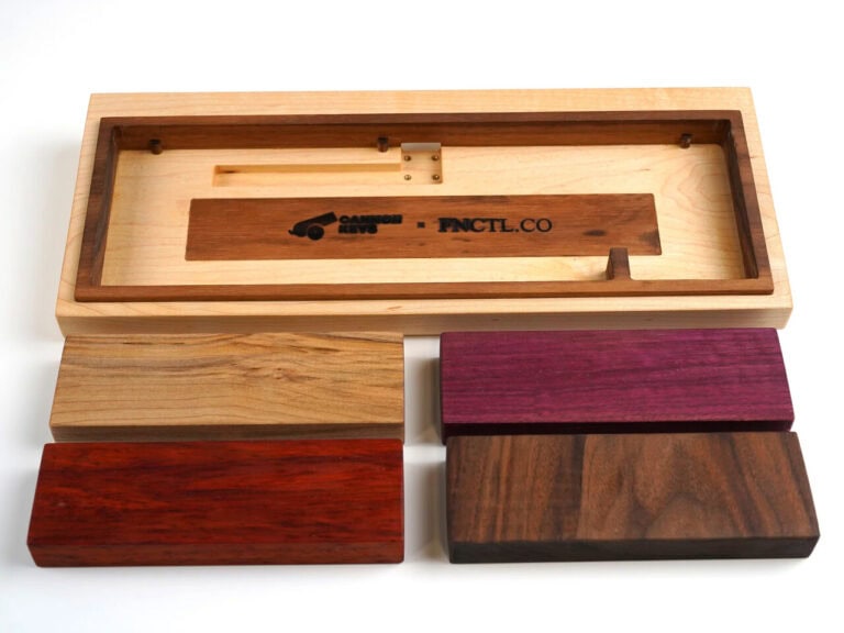 De markt voor custom mechanische toetsenborden staat bekend om hoge prijzen en exotische materialen, maar CannonKeys‘ nieuwste aankondiging, een houten Bakeneko65-toetsenbord, gaat nog een stap verder met een vanafprijs van $ 380 voor een op maat gemaakte houten behuizing en PCB-kit. De Bakeneko65 is een bestaand model van CannonKeys - en een van de meer betaalbare kits, let wel - maar de Wood Bakeneko65, zoals het op de website wordt genoemd, is een samenwerking met de in Seattle gevestigde werkplaats Functional.co, die een premium touch toevoegt aan een verder eenvoudig toetsenbordontwerp. Het ontwerp blijft trouw aan de traditionele tray-montage van de Bakeneko65, maar CannonKeys levert O-ringen voor de montage mee, het toetsenbord heeft een FR4-plaat en het hout wordt afgewerkt met Rubio Monocoat Pure 2C-olie met een verharder. Het toetsenbord wordt ook geleverd in een “op maat gemaakte houten doos".