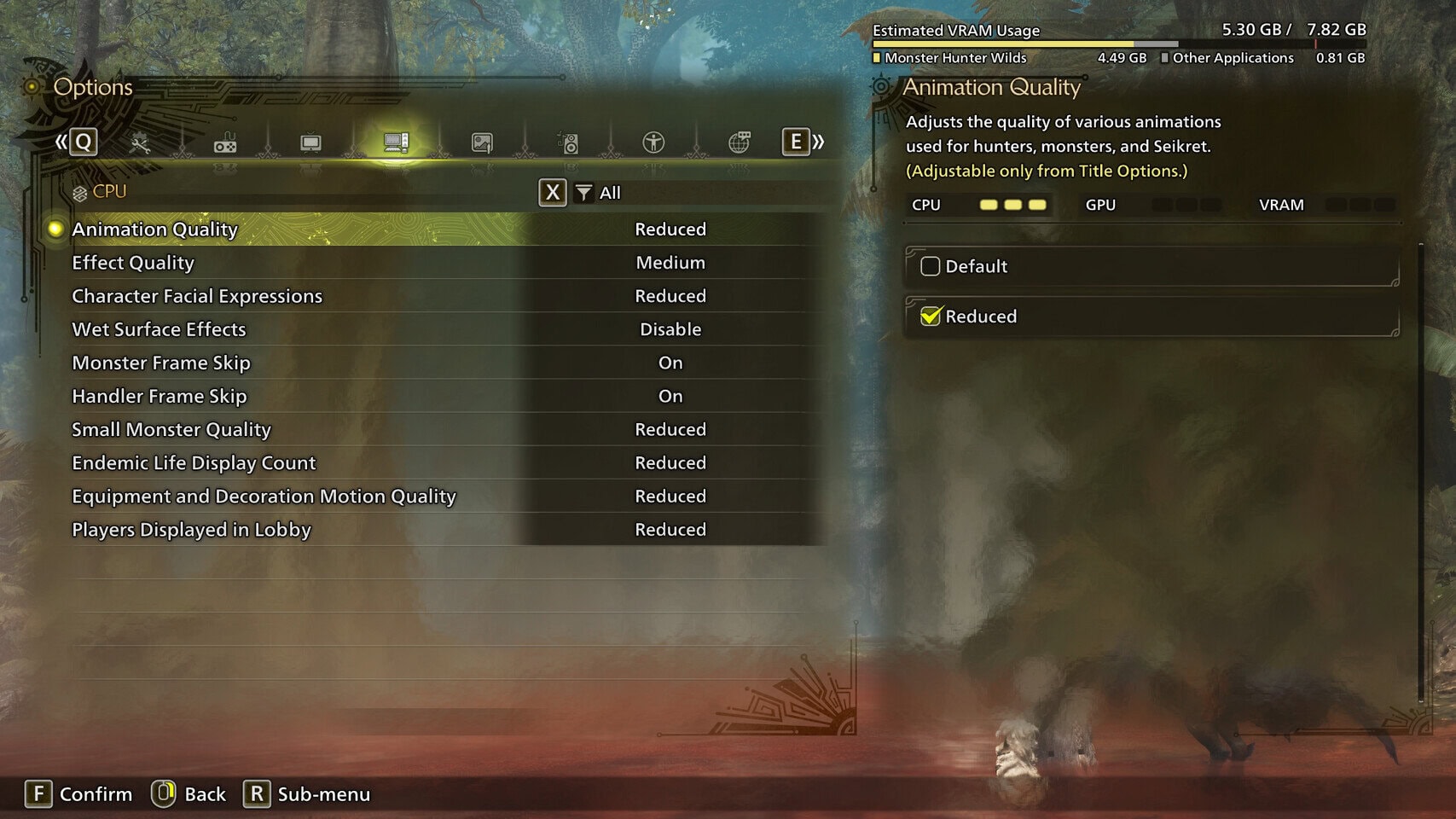 Er wordt een tabblad “CPU" toegevoegd aan het menu Opties. Dit tabblad bevat nieuwe CPU-opties om de CPU-belasting te verminderen, zoals het aantal weergegeven endemische levensvormen, het aantal spelers dat in de lobby wordt weergegeven, de kwaliteit van kleine monsters, de effectkwaliteit en de animatiekwaliteit.