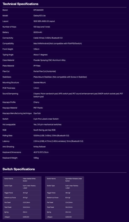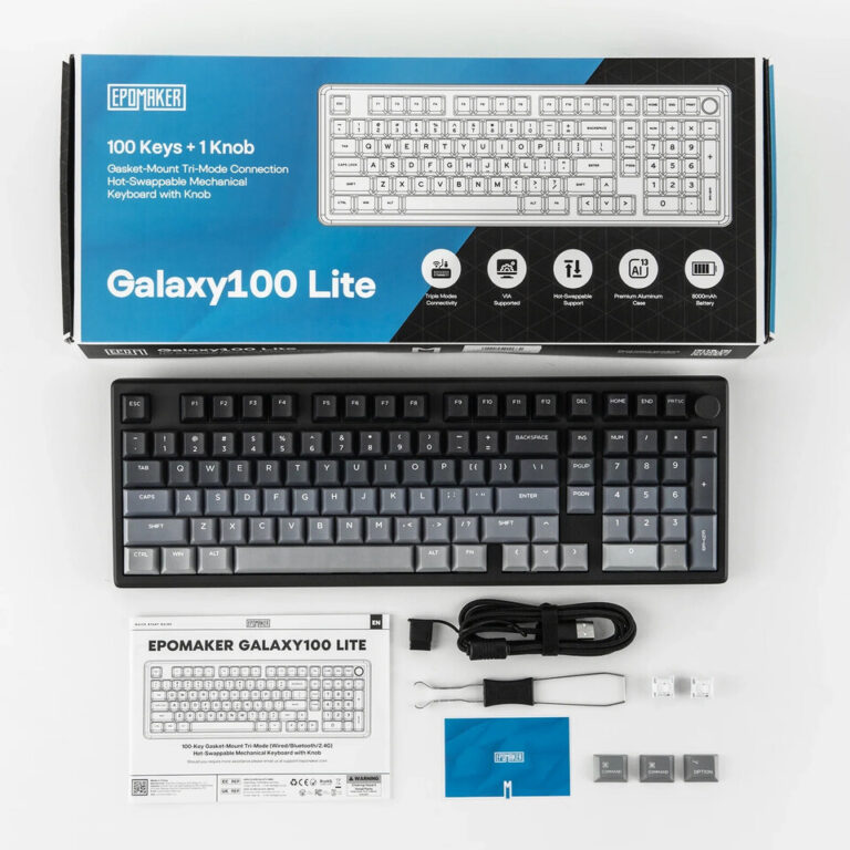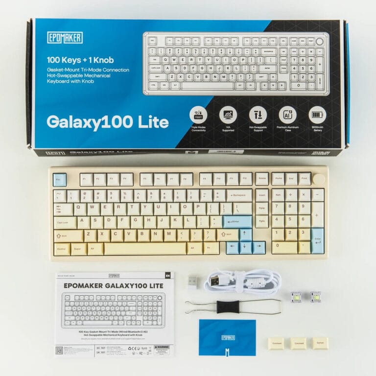 Beide toetsenborden hebben een behuizing van aluminiumlegering en een gasket-mount-structuur met meerdere dempingslagen (Poron, IXPE, PET) voor een bevredigend, dof geluid. Ze hebben elk zuidgerichte RGB, hot-swappable PCB’s en 8000 mAh-batterijen met drievoudige connectiviteit (2,4 G/Bluetooth/bekabeld). Dankzij de QMK/VIA-ondersteuning kunnen toetsen, macro’s en verlichting uitgebreid worden aangepast.