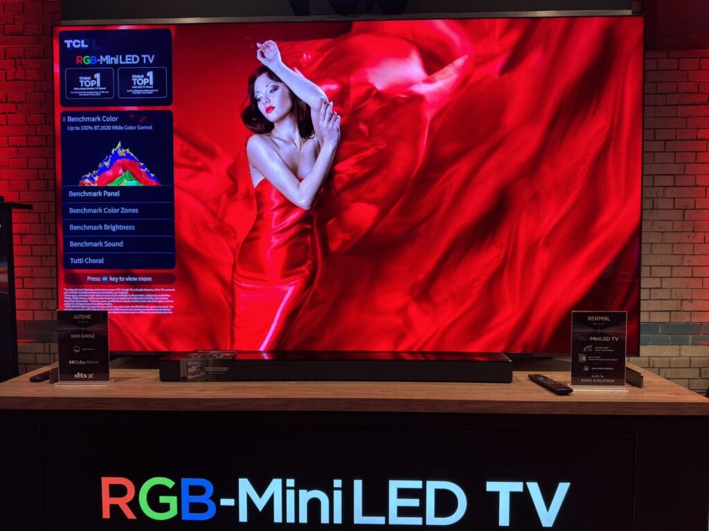 Naast SQD-MiniLED introduceerde TCL ook RGB Mini LED, een techniek waarbij het traditionele witte backlight wordt vervangen door afzonderlijke rode, groene en blauwe Mini LED’s. Hierdoor is er minder afhankelijkheid van kleurfilters. Dit resulteert in een efficiëntere lichtopbrengst en een potentieel hoger kleurvolume. Dit betekent dat displays nauwkeuriger in kleuraccuratie worden weergegeven. Dit kan in HDR goed uitpakken.