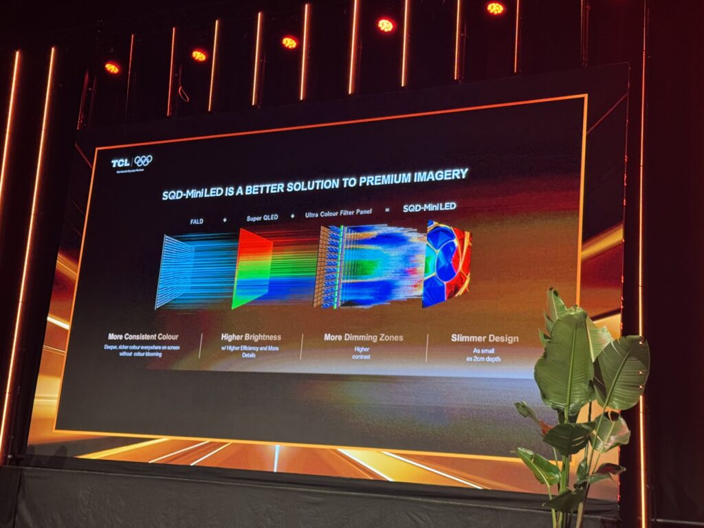 Ook werd een nieuwe technologie geïntroduceerd die dit jaar in veel televisies terug zal komen, namelijk SQD-MiniLED. Een interessante ontwikkeling waar we later uitgebreider op terugkomen, die volgens TCL de kijkervaring naar een hoger niveau moet tillen.