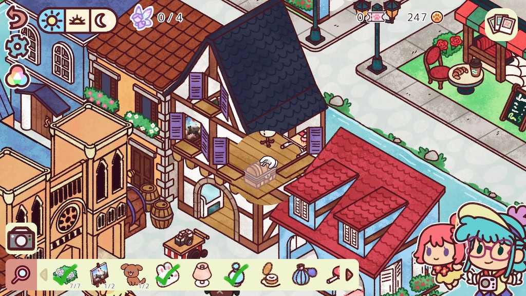 De sfeer is heel rustig en “cozy". Het voelt een beetje alsof je door een soort geïllustreerd prentenboek huppelt. Geen felle disco-effecten of drukke animaties, geen monsters die om een hoekje loeren en je willen kapotslopen, maar gewoon kalme, kleurrijke omgevingen waar je op je eigen tempo doorheen kan gaan. Dat werkt voor mij goed, zeker als je de game speelt om even te ontspannen na alle ravage in een game als Resident Evil.