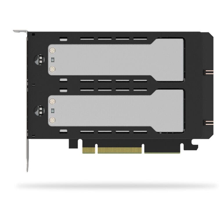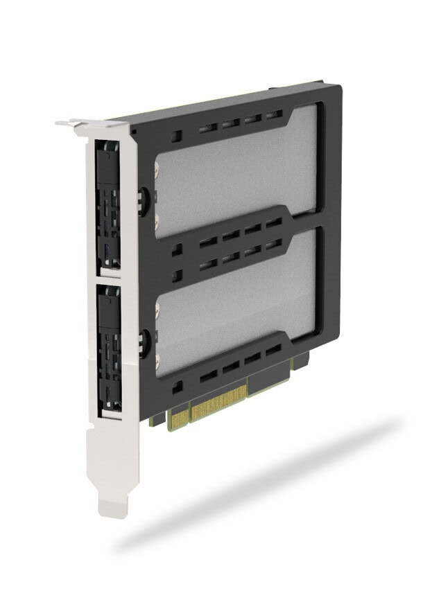 - PCIe 5.0 x8-interface (achterwaarts compatibel met PCIe 4.0/3.0) *PCIe Bifurcation x4, x4 voor PCIe 8x, of x4, x4, x4, x4 voor PCIe 16x is vereist voor toegang tot beide schijven