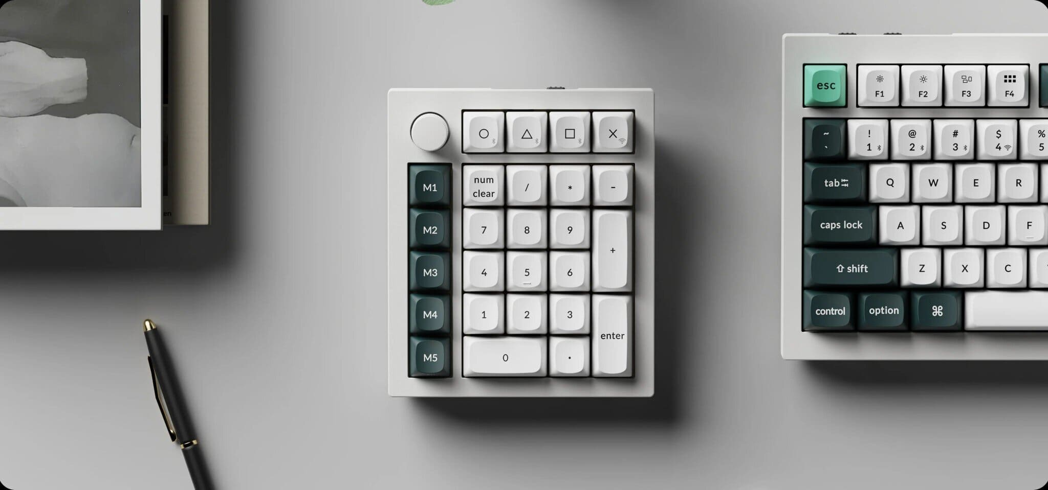 Het idee lijkt te zijn om een optie te bieden voor gamers die bijvoorbeeld de compacte 60% Keychron Q4 HE willen, maar het numerieke toetsenblok nodig hebben voor andere taken en dezelfde look en feel willen behouden voor hun toetsenbord en numeriek toetsenblok. De Q0 HE is verkrijgbaar in de online winkel van Keychron voor $ 139,99 en is er in wit en zwart. De zwarte versie heeft echter opvallend genoeg alleen zwarte toetsen op de macrokolom, terwijl de toetsen van het numerieke toetsenblok zelf witte toetsen hebben. De witte versie heeft bijpassende witte keycaps met donkergroene accenttoetsen op de macrokolom.