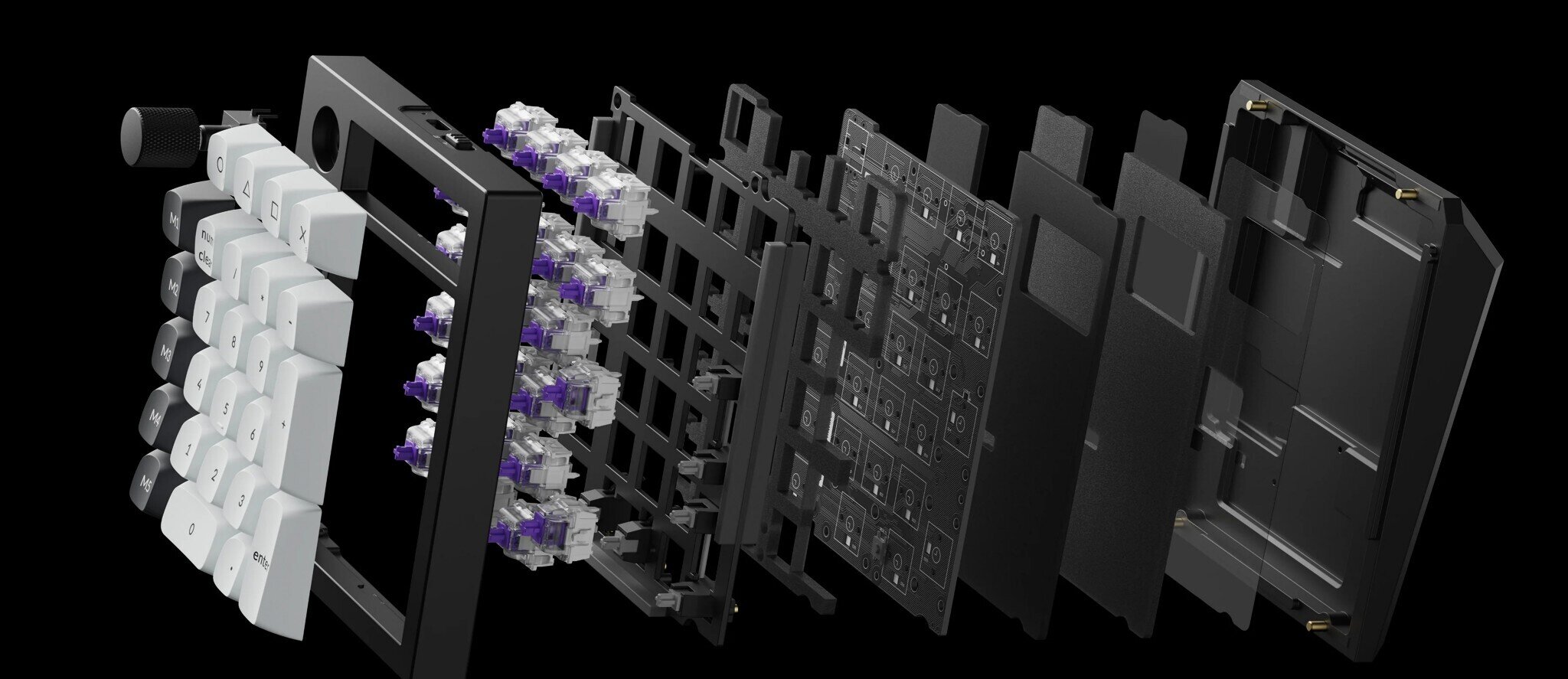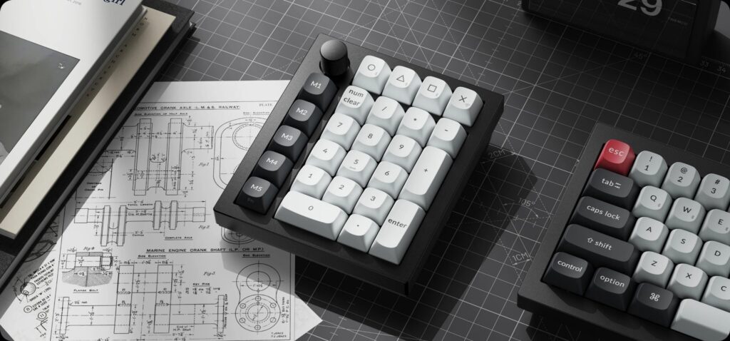 Keychron heeft onlangs de Q0 HE gelanceerd, een draadloos, losstaand numeriek toetsenblok met dezelfde TMR-sensoren en functies als de rest van de Q HE-serie. Het is echter geen doorsnee numeriek toetsenblok, want de Q0 HE heeft ook vijf macrotoetsen en een programmeerbare draaiknop in een kolom aan de linkerkant van het numerieke toetsenblok, en een rij aanpasbare toetsen boven het hoofdgedeelte.