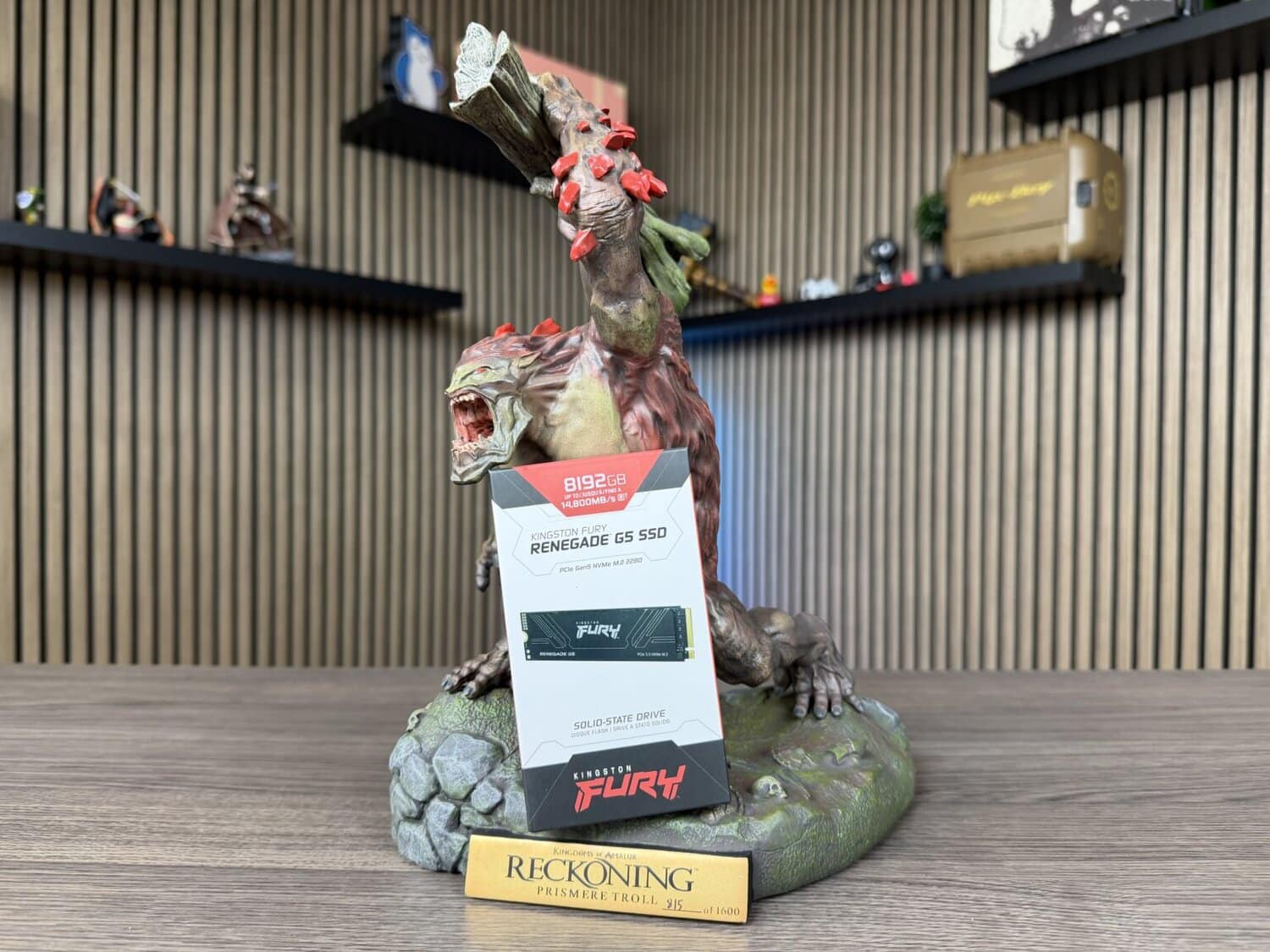 Met de Fury Renegade G5 8TB SSD kom je uit op vergelijkbare foto’s als het om verpakking en inhoud gaat als eerdere G5-reviews. We hebben de aankleding dit keer wat anders aangepakt in samenwerking met een Prismere Troll. Deze is onlangs overgevlogen uit Amerika.