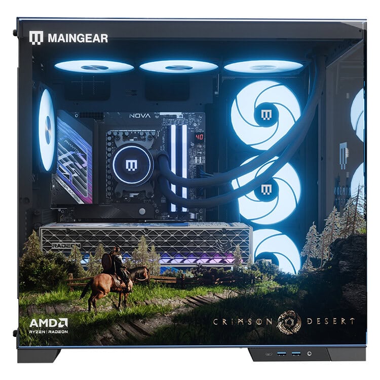 Crimson Desert is een van de meest verwachte openwereldgames van 2026, en MAINGEAR heeft een systeem gecreëerd dat dit moment waardig is. De kern van deze samenwerking wordt gevormd door de Crimson Desert AMD Radeon RX 9070 XT, de Sapphire Nitro+ limited edition GPU met een ontwerp geïnspireerd op de visuele stijl van de game, en de AMD Ryzen 7 9850X3D CPU, ’s werelds snelste gamingprocessor. Samen zorgen ze voor een systeem dat alles aankan wat Pywel te bieden heeft: uitgestrekte open landschappen, dynamische belichting, grootschalige factiegevechten en cinematische eindbaasgevechten, zonder compromissen.