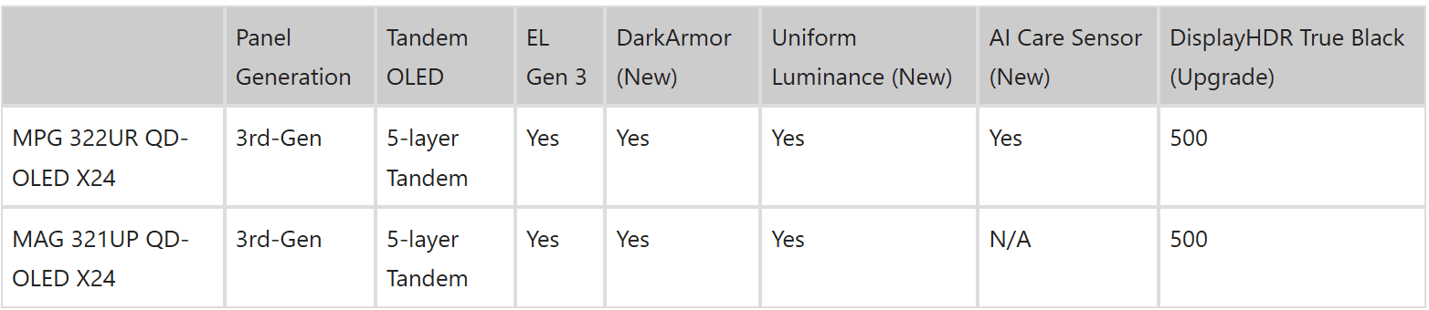 MSI heeft een belangrijke update aangekondigd voor zijn assortiment 32-inch 4K QD-OLED-gaming monitoren, met de introductie van twee nieuwe modellen die zijn afgestemd op verschillende gamerprofielen. Zowel de MPG 322UR QD-OLED X24 als de MAG 321UP QD-OLED X24 zijn gebaseerd op de nieuwste 5-laags Tandem OLED-architectuur met EL Gen 3-technologie, waarmee een nieuwe norm wordt gezet voor lichtopbrengst en levensduur in de 32-inch 4K-serie.