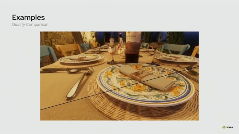 NVIDIA heeft meer details vrijgegeven over zijn Neural Texture Compression (NTC)-technologie, die het GPU VRAM-gebruik tot wel zeven keer kan verlagen. In een technologiedemonstratie tijdens een van de GTC 2026-sessies onthulde NVIDIA dat Neural Texture Compression het VRAM-gebruik in bepaalde scènes kan terugbrengen van 6,5 GB naar slechts 970 MB. Dit werd gedemonstreerd in een video waarin een Toscaanse villa en het interieur ervan werden vergeleken. Met vrijwel geen verschil in textuurweergave, vertegenwoordigt Neural Texture Compression een belangrijke vooruitgang in het behoud van grafische kwaliteit, terwijl er GPU-geheugen vrijkomt voor meer gamecontent. Zo biedt NTC-technologie in zowel de buitenkant van de Toscaanse villa als in de interieurdemo met gedetailleerd serviesgoed gebruikers texturen van hoge kwaliteit met behoud van uitstekende materiaalkwaliteit.