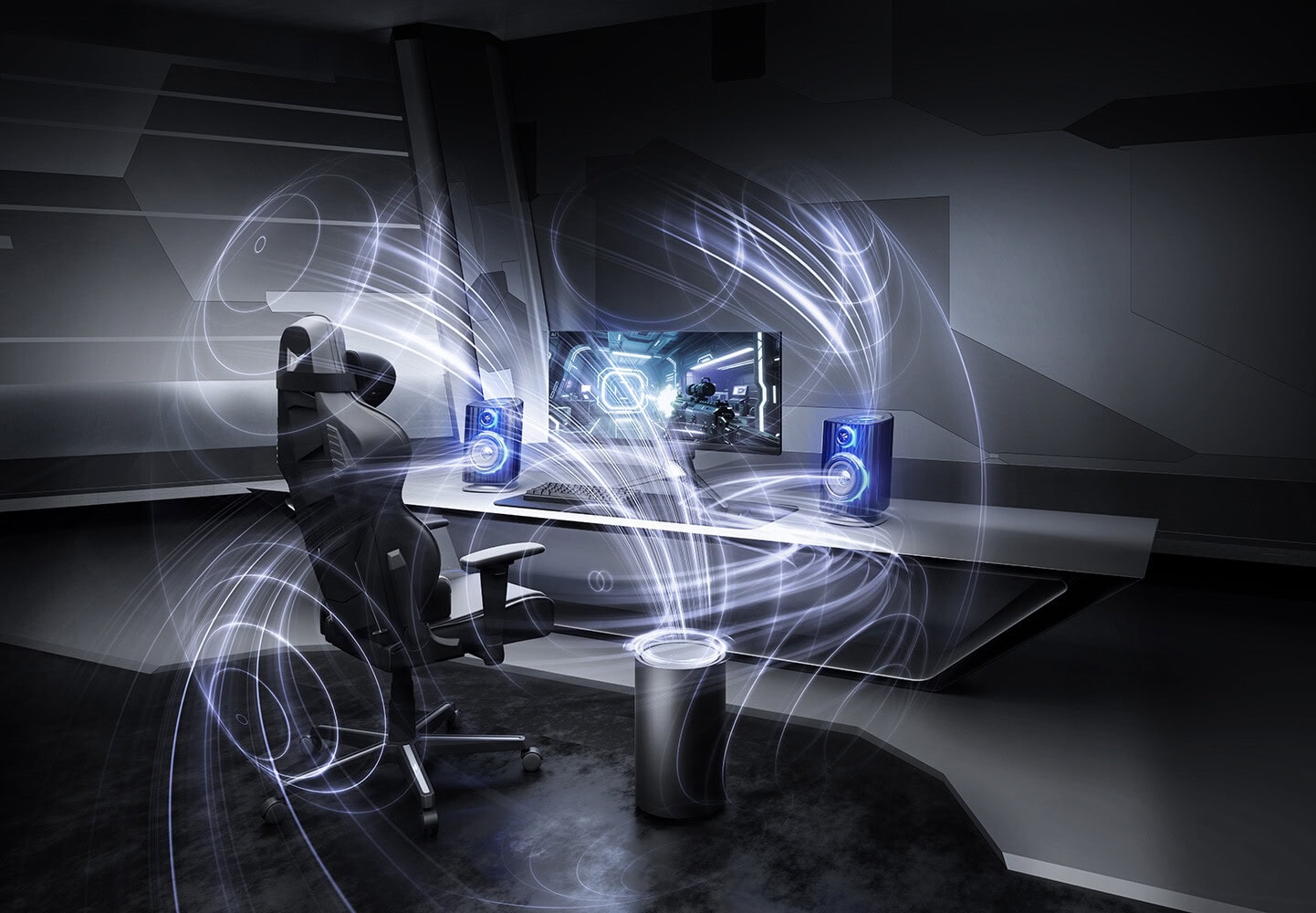 Compact maar krachtig, elke luidspreker meet 17,8 x 21,6 x 27,7 cm en past netjes naast 32-inch monitoren, terwijl het geluid met een kanteling van 8° naar boven wordt geprojecteerd voor nauwkeurig luisteren. Het modulaire systeem is ontworpen voor groei, met nekspeakers en subwoofers die draadloos worden gekoppeld via een enkele USB-dongle, wat zorgt voor eenvoudige upgrades en een probleemloze installatie.
