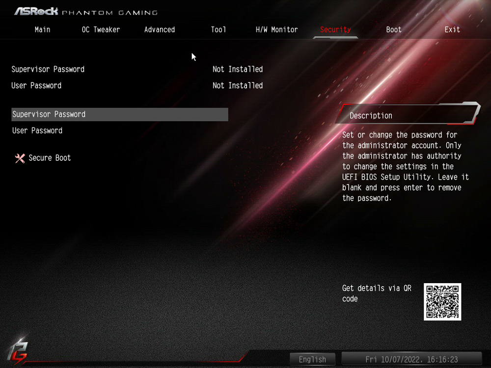 Het H/W-menu bestaat uit temperaturen en algemene systeemparameters. Het Security-menu biedt een extra beschermlaag voor toegang tot de BIOS. Afsluitend zijn er nog het Boot en Exit-menu. Waar zaken zoals bootvolgorde centraal staan. Het Exit-menu spreekt voor zich.