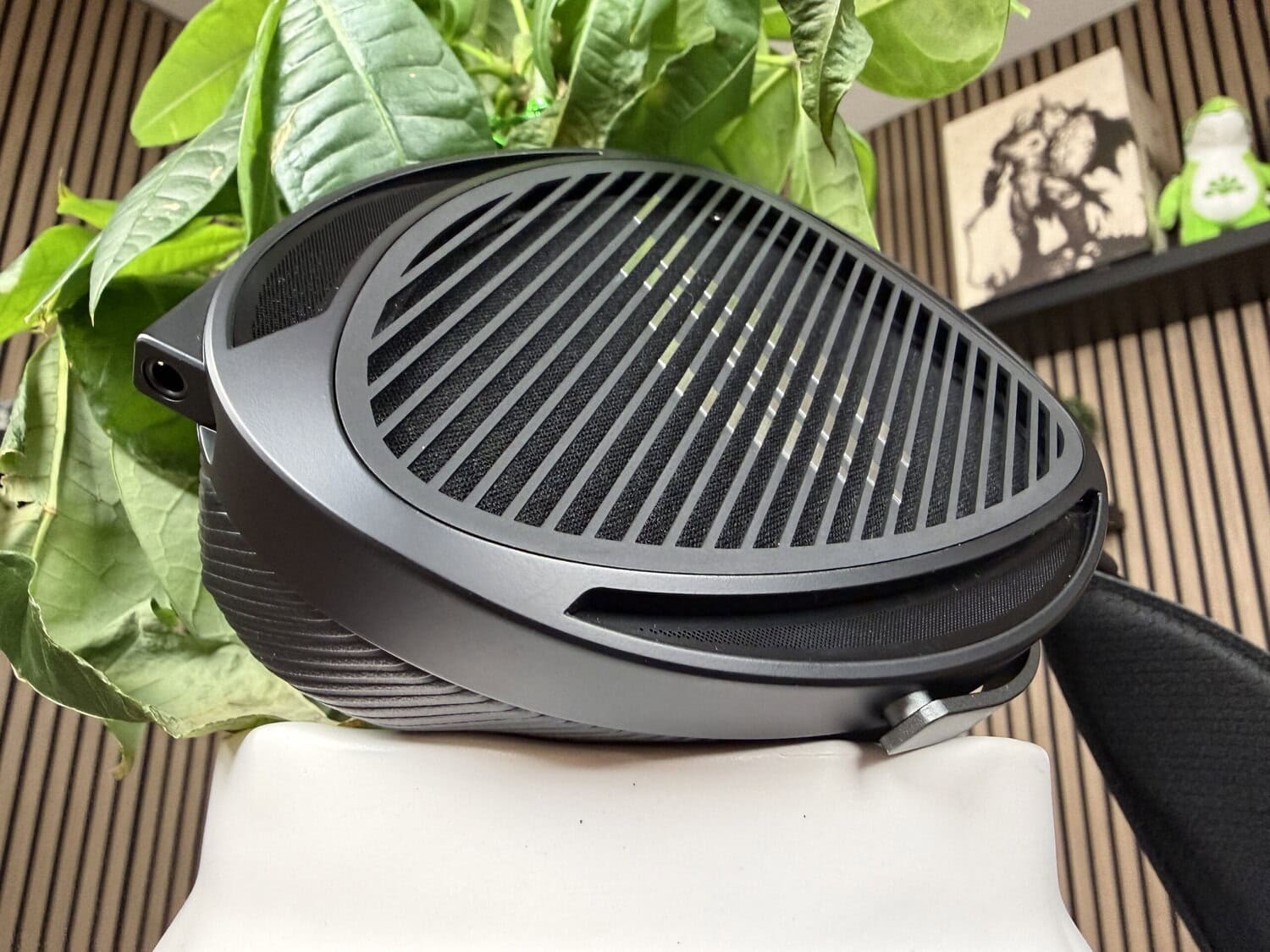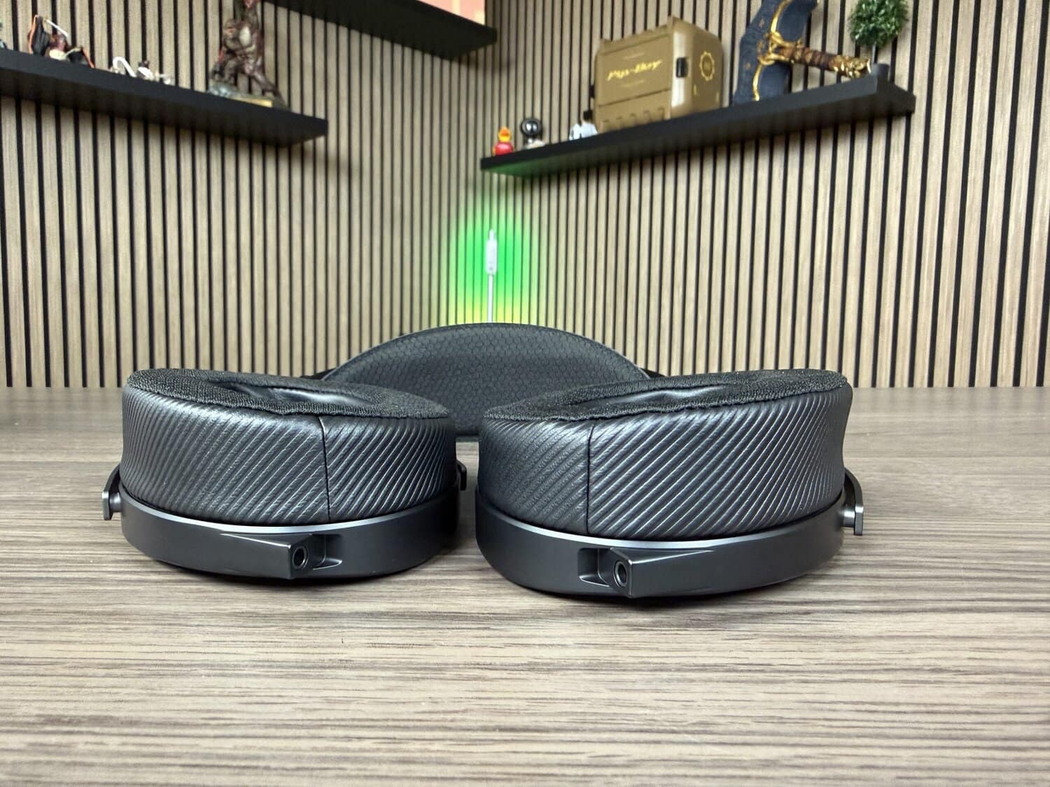Door naar de ROG Kithara zelf. De headset heeft een open ontwerp Dit valt op aan het grillontwerp op het linker- en rechteroor. Wanneer je de binnenzijde van de oorkussens bestudeert, zie je lichtinval vanaf het grillontwerp. Met een open ontwerp heb je rekening te houden met meer omgevingsgeluiden.