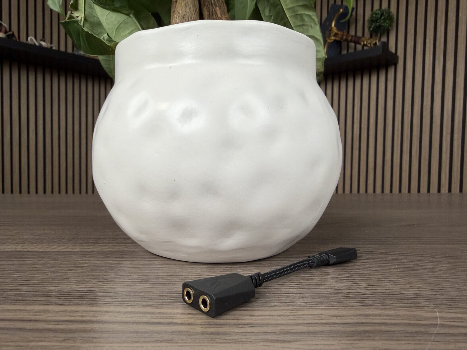 De oorkussens spelen lekker mee met het grillontwerp, waardoor er een gelijkmatig uiterlijk ontstaat. De ROG Kithara betreft een bekabelde headset; iets wat al lang duidelijk mocht zijn, maar alsnog willen we het nog even benadrukken. Om die reden zijn er geen knoppen te vinden op de headset zelf. Het is bij uitstek een plug-and-play-oplossing. Nogmaals, we kunnen het niet vaak genoeg benadrukken: gebruik een DAC!
