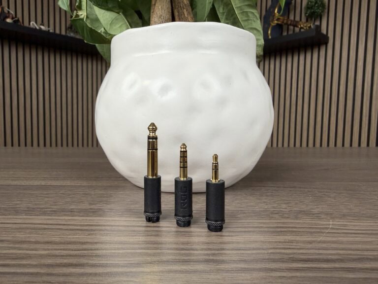 We hebben een handleiding, een USB Type-C-adapter naar 3,5 mm Jacks en drie formaten aan Jacks-pins (3,5, 4,4 en 6,3 mm). De meegeleverde kabel van 1,8 meter is compatibel met de reeds genoemde Jacks-pins. Je bent dus flexibel als het om inzet gaat van de ROG Kithara. Overigens levert ASUS twee kabels mee: één waar je een directe verbinding maakt met één van de Jacks-pin, waarna er twee 3,5 mm Jacks in de headset gaan. En een variant met een in-line controller en boommicrofoon, waar wederom twee 3,5 mm Jacks in de headset gaan.