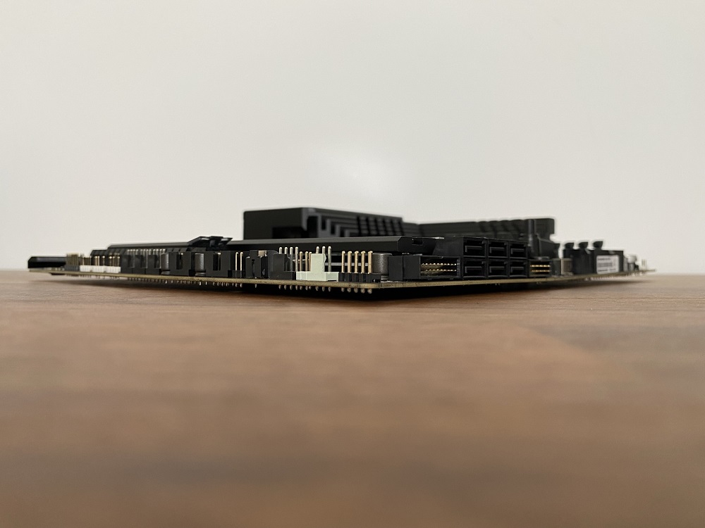 Op het moment van schrijven zijn er nog geen Gen 5 SSD’s op de markt. Wel is het mogelijk om gebruik te maken van de Hyper M.2 SSD-insteekkaart voor twee M2 Gen 4 SSD’s (PCIe 4.0). Met plaatsing van de Hyper M.2 SSD-kaart schakelen de twee aanwezige PCIe 5.0 x16-sloten in x8/x8-modi over. Onderaan het moederbord is nog een PCIe 4.0 x16-slot te vinden. Die biedt ondersteuning voor een x4 en x4/x4-modi, afhankelijk van de opstelling.