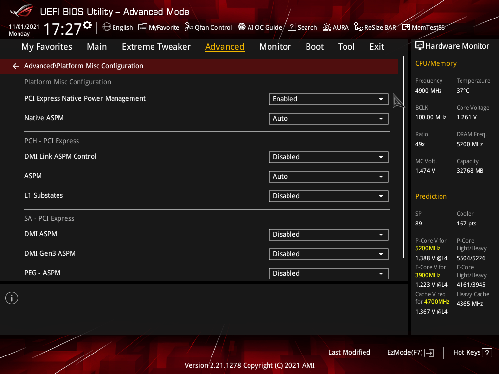 In het Extreme Tweaker menu krijg je toegang om te overklokken. Opties zoals core voltage zullen we hier verder aanpassen voor het overklokken. Wil je de Turbo modus uitschakelen, multiplier aanpassen of nog dieper in de voltages springen; AI Tweaker is het menu. Ook komen we hier uiteraard instellingen voor DDR5 tegen.