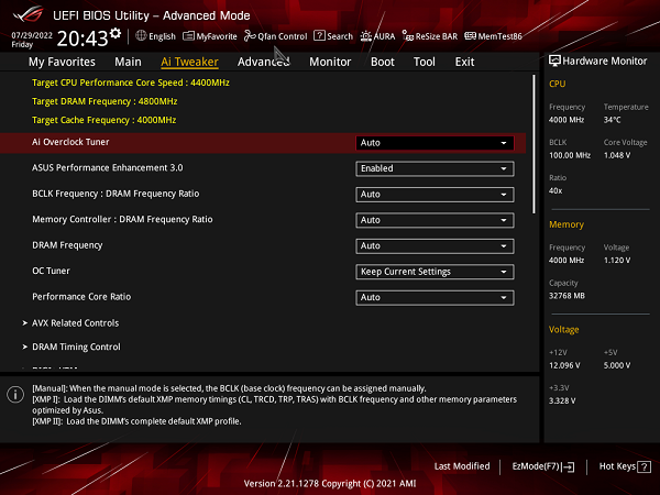 In het Extreme Tweaker menu krijg je toegang om te overklokken. Opties zoals core voltage zullen we hier verder aanpassen voor het overklokken. Wil je de Turbo modus uitschakelen, multiplier aanpassen of nog dieper in de voltages springen; AI Tweaker is het menu. Ook komen we hier uiteraard instellingen voor DDR5 tegen. Uiteraard rekeninghoudend dat je op het B660-platform niet de CPU kan overklokken.