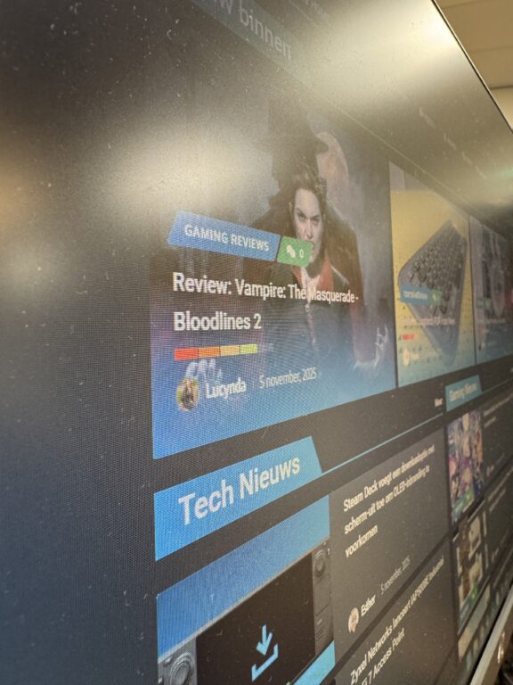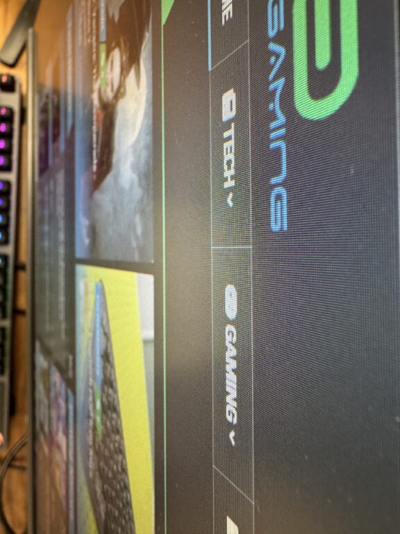 De kijkhoeken van de XG248QSG ACE zijn, zoals te verwachten bij een TN-paneel, beperkt. Vanuit een rechtstreekse positie oogt het beeld helder en contrastrijk, maar zodra je het scherm van boven of onder bekijkt, neemt de helderheid merkbaar af en verschuiven de kleuren licht. Vooral donkere tinten verliezen snel detail bij een schuine kijkhoek. Vanuit de zijkant blijft de weergave iets beter overeind, al zie je ook daar dat het contrast afneemt.