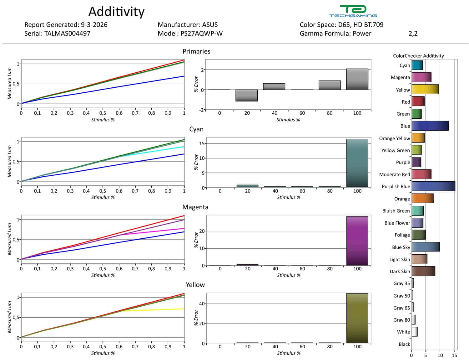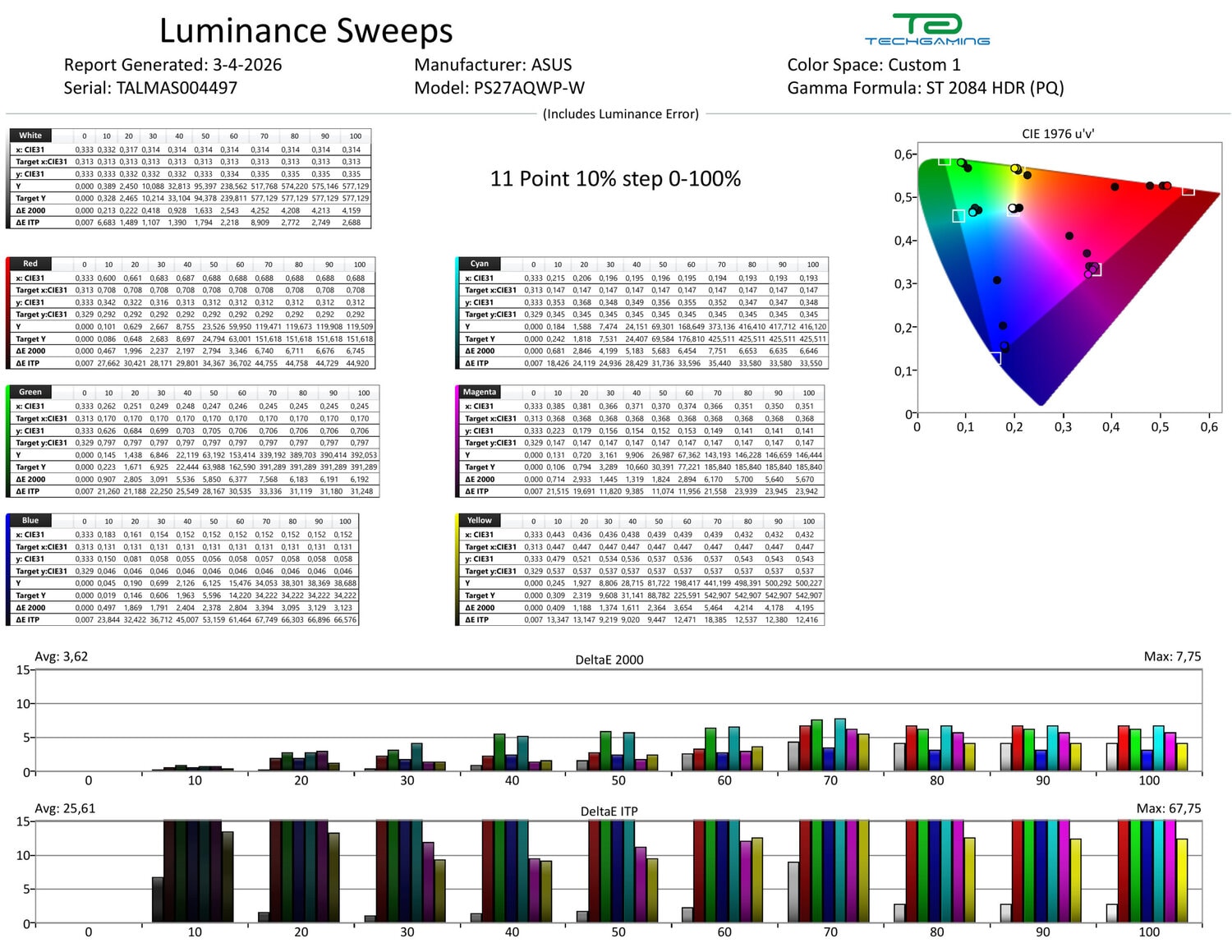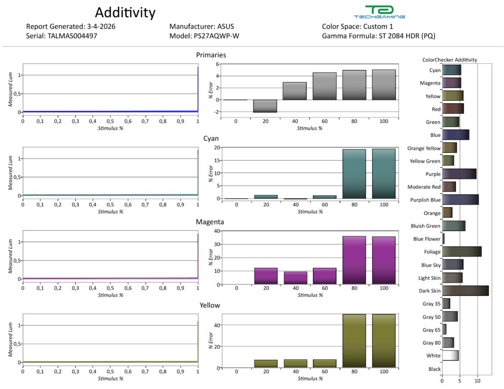 De metingen laten lichte verbeteringen zien in Saturation Sweeps en ColorChecker, maar de grayscale blijft nagenoeg gelijk en laat zelfs op enkele punten een kleine verslechtering zien.