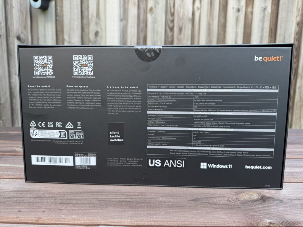 | Keycaps | be quiet! PBT double-shot |