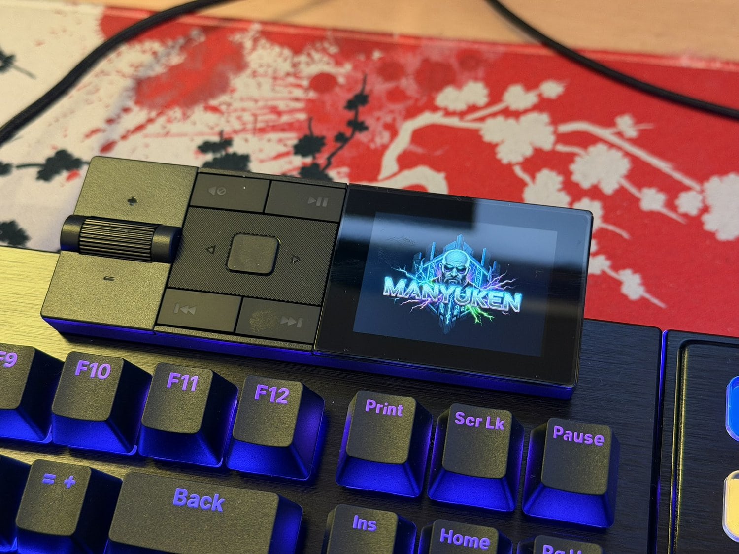 Als laatste bekijken we de mediamodule met beeldscherm, voordat we het toetsenbord zelf gaan bekijken. De module is relatief klein, maar stevig uitgewerkt en voelt ook vooral degelijk door het gewicht. Door een USB-C-connector kan je de module op twee plekken (links en rechts) op het toetsenbord vastklikken.