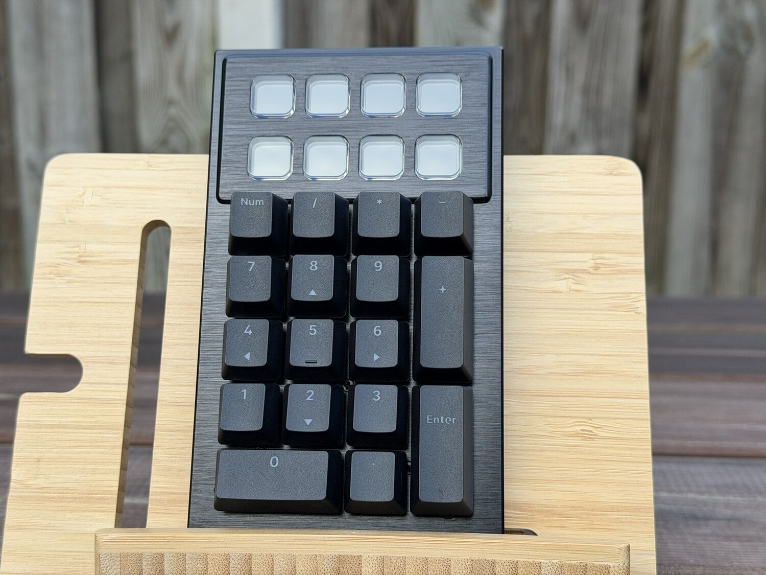 Zodra we alles hebben verhoogd, kunnen we het toetsenbord en numerieke gedeelte in elkaar klikken en dat gaat met één soepele klik en alles voelt stevig en staat als een huis. Echter, zodra je het toetsenbord optilt, zie je wel dat de verbinding tussen de twee modules enigszins doorbuigt en we hopen dat dit in een tweede versie nog iets versterkt kan worden, maar voor de praktijkervaring is het zeker geen zwaarwegend nadeel.