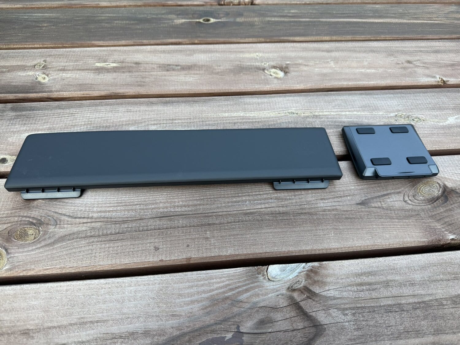 Hiermee kan je het toetsenbord dus verhogen op een andere manier dan de traditionele pootjes die je uit het toetsenbord kunt klikken. De pootjes klikken zeer stevig vast en geven je dus de vrijheid om het toetsenbord op drie hoogtes te gebruiken in totaal.