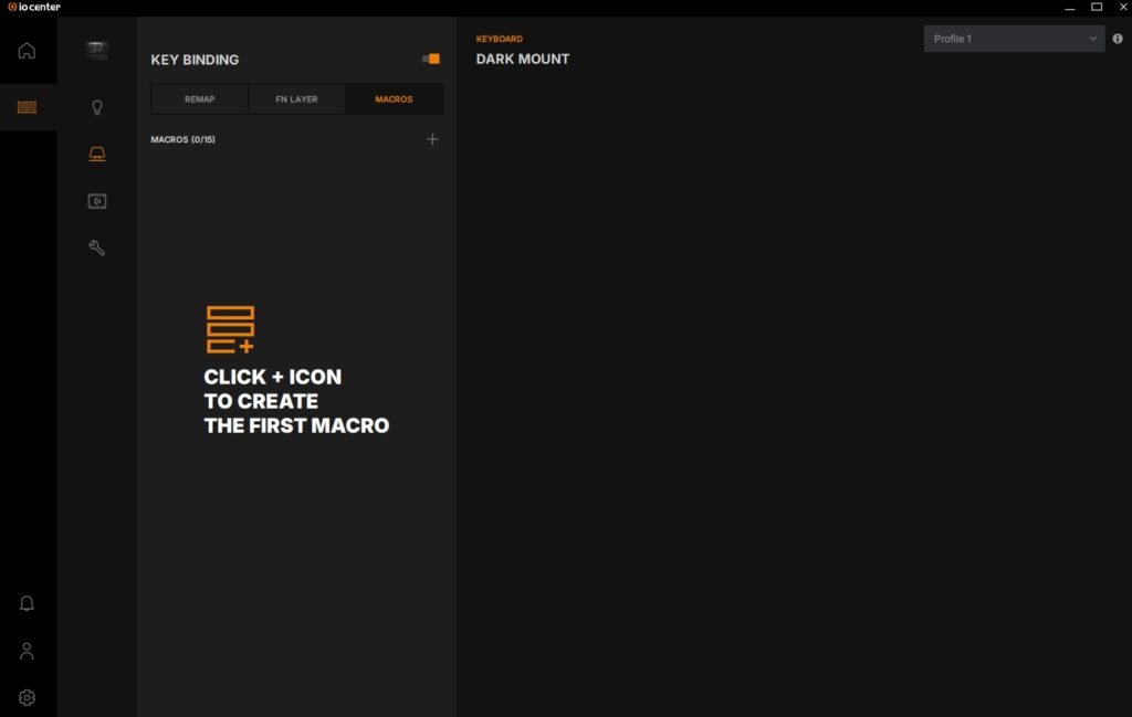 Uiteraard kan je in de IO Center-software ook FN-combinaties programmeren voor extra functionaliteit en heb je de mogelijkheid om macro’s te maken. Het leuke van het maken van de macro’s is dat je ook jouw bewegingen met de muis samen of apart van het toetsenbord kunt opnemen, zodat je heel specifieke opdrachten kunt programmeren.
