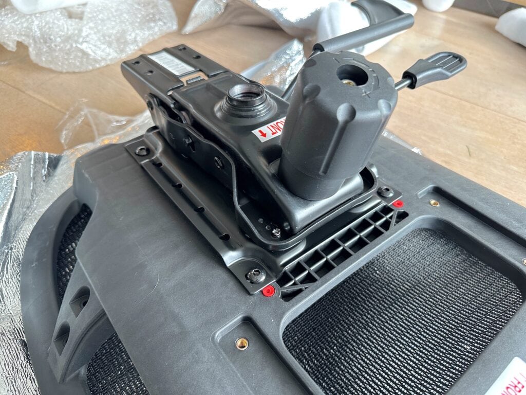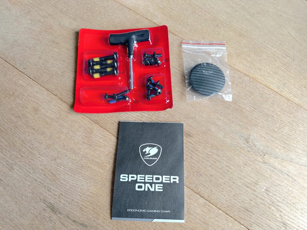 Dan rest ons nog maar één onderdeel en dat is de hoofdsteun monteren die tevens ook volledig verstelbaar is. Ook dit is niks meer dan het vastdraaien van twee imbusbouten en binnen ongeveer 15 tot 20 minuten kan je de Speeder One volledig gemonteerd hebben.