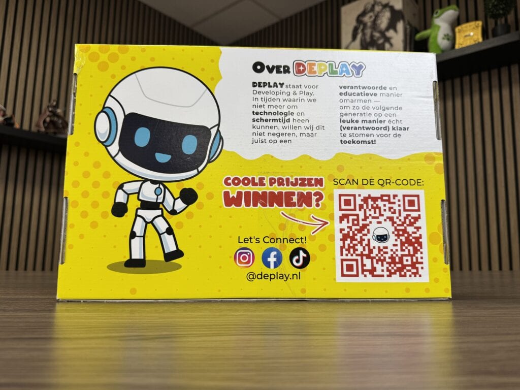 Wanneer je de doos opent, is het eerste wat je ziet een DEPLAY-garantiekaart. Een leuke toevoeging hiervan is dat er op de achterkant een kleurplaat staat die je kan inkleuren.