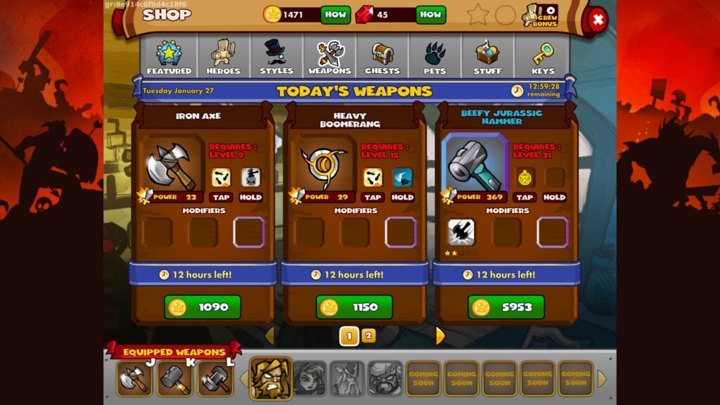 Het grinden wordt interessant gehouden, omdat je iedere keer dat je een dungeon vrijspeelt de kans hebt om nieuwe wapens en andere loot te vinden, en die heb je natuurlijk weer nodig om verder te komen. Ook kun je ervoor kiezen om al je loot te verkopen, zodat je later weer meer coins overhoudt voor andere dingen. Er is ook een shop te vinden die dagelijks andere items en wapens aanbiedt, waar je je verdiende coins aan uit kunt geven.