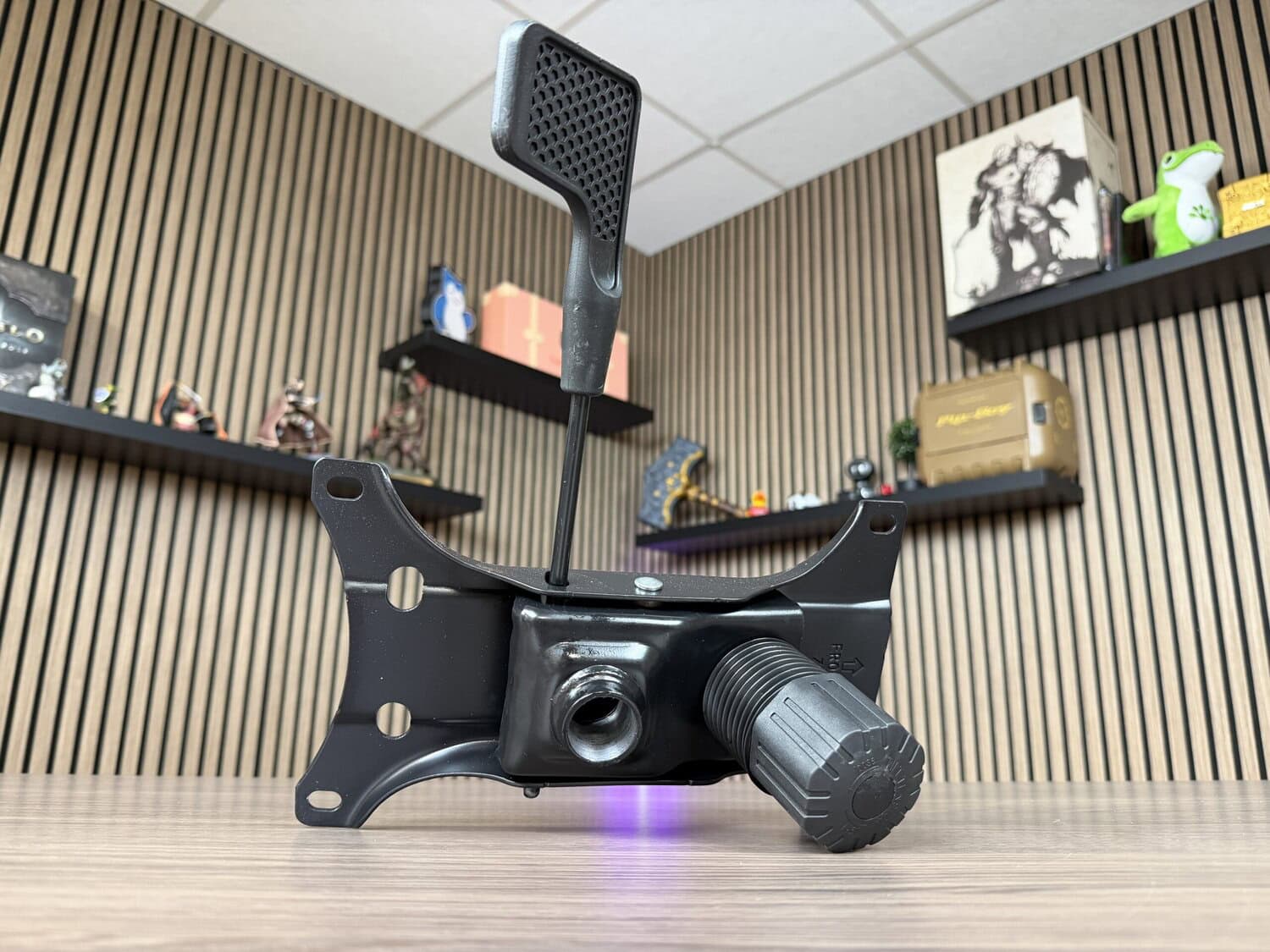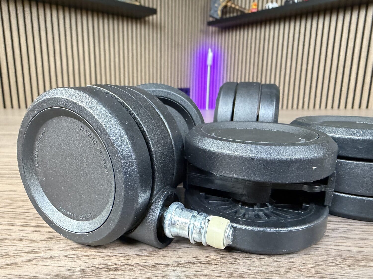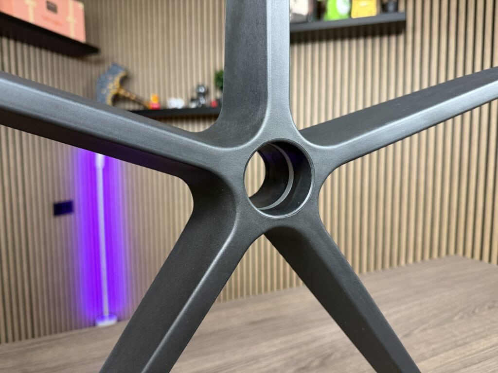 De stoelbasis heeft een duidelijke pijlindicator voor de juiste montagerichting. Deze monteer je met de pijl richting de voorzijde van het zitvlak. Montage verlangt een viertal schroeven. Hierna is de basis gereed om te plaatsen op het onderstel, bestaande uit de 65mm-wielen, de wielbasis, de gasveer met bijhorende cover.