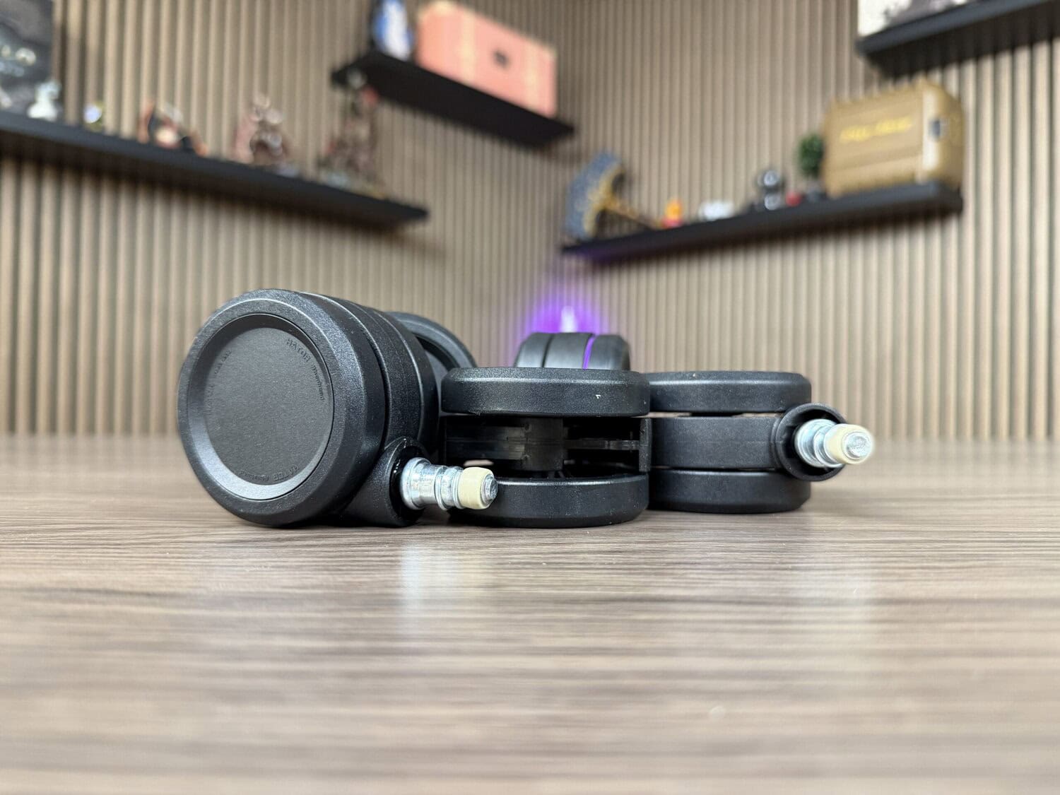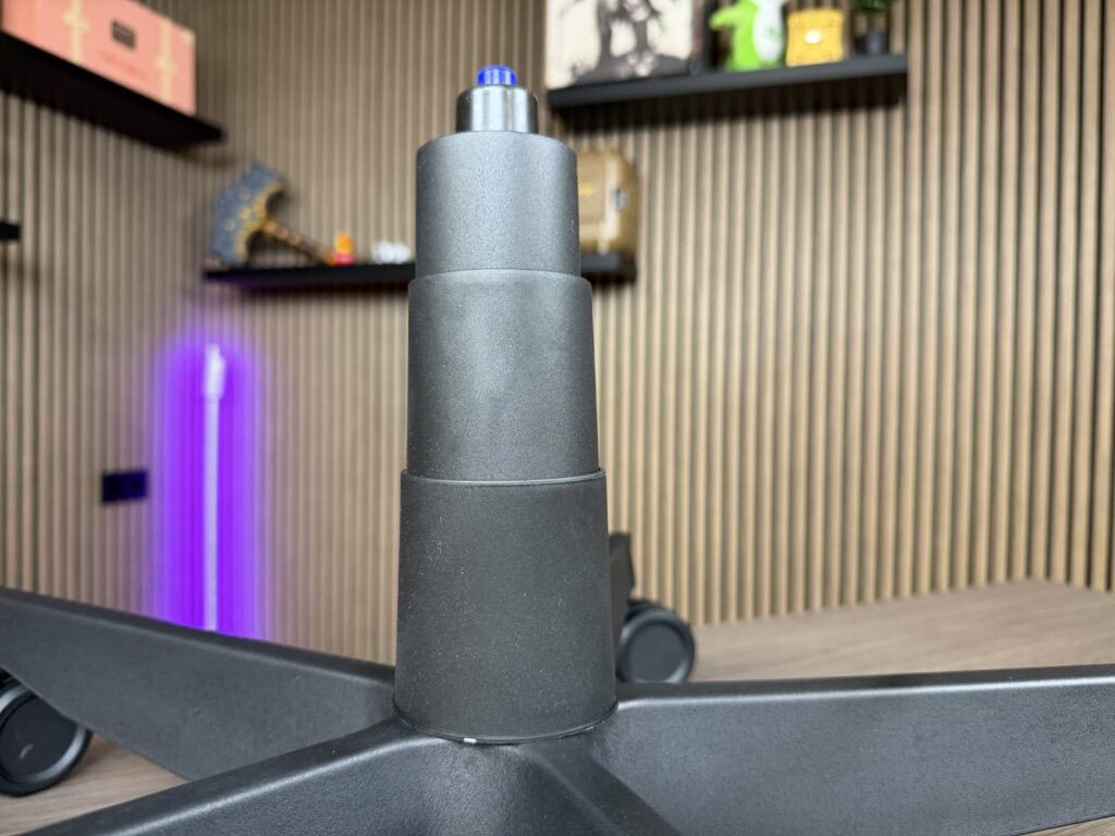 De vijf 65m-wielen duw je eenvoudig in de kunststof wielbasis, waarna je de gasveer in het hart van de stoelbasis laat zakken. De gasveer-cover zakt eenvoudig over de gasveer, zodat deze afgeschermd is en voorkomt dat er smeermiddel op je kleding komt.