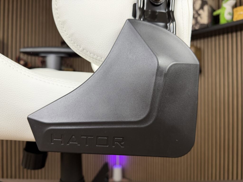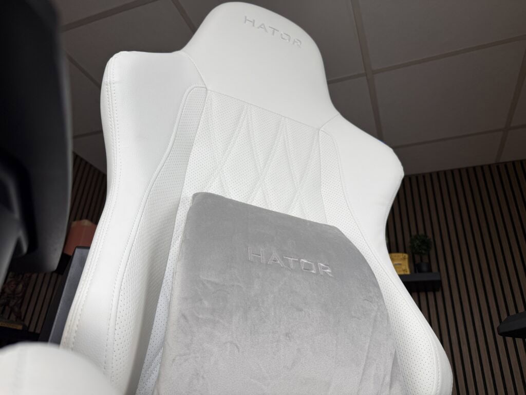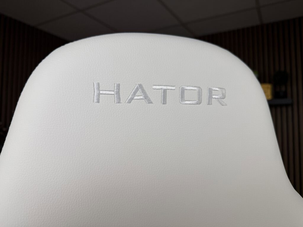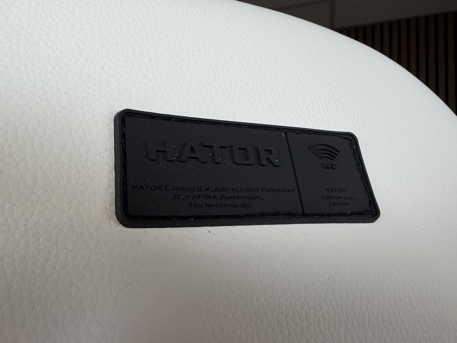 De rugsteun heeft een deftige stiksel afwerking. Ter hoogte van de hoofdsteun vinden we het Hator-woordmerk. Aan de achterzijde zit een NFC-chip. Hiermee kan je meer leren over deze gamestoel en volledig eigen maken.
