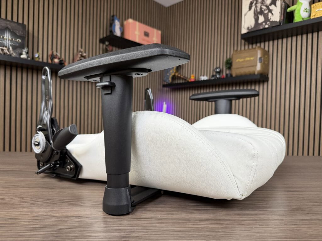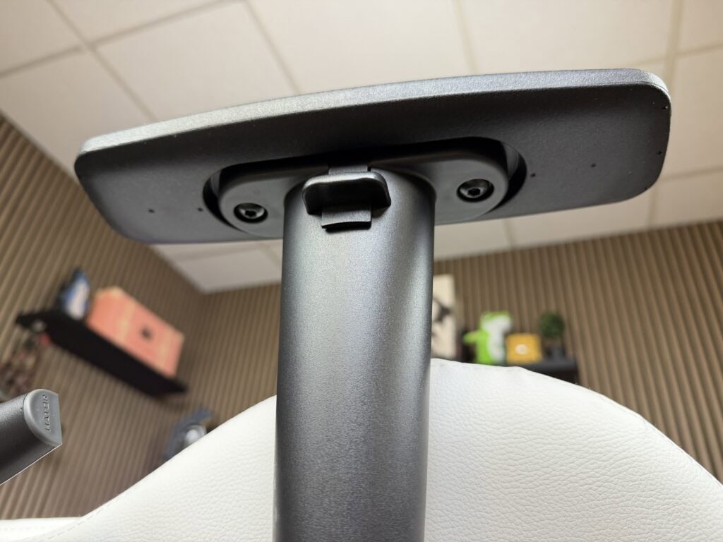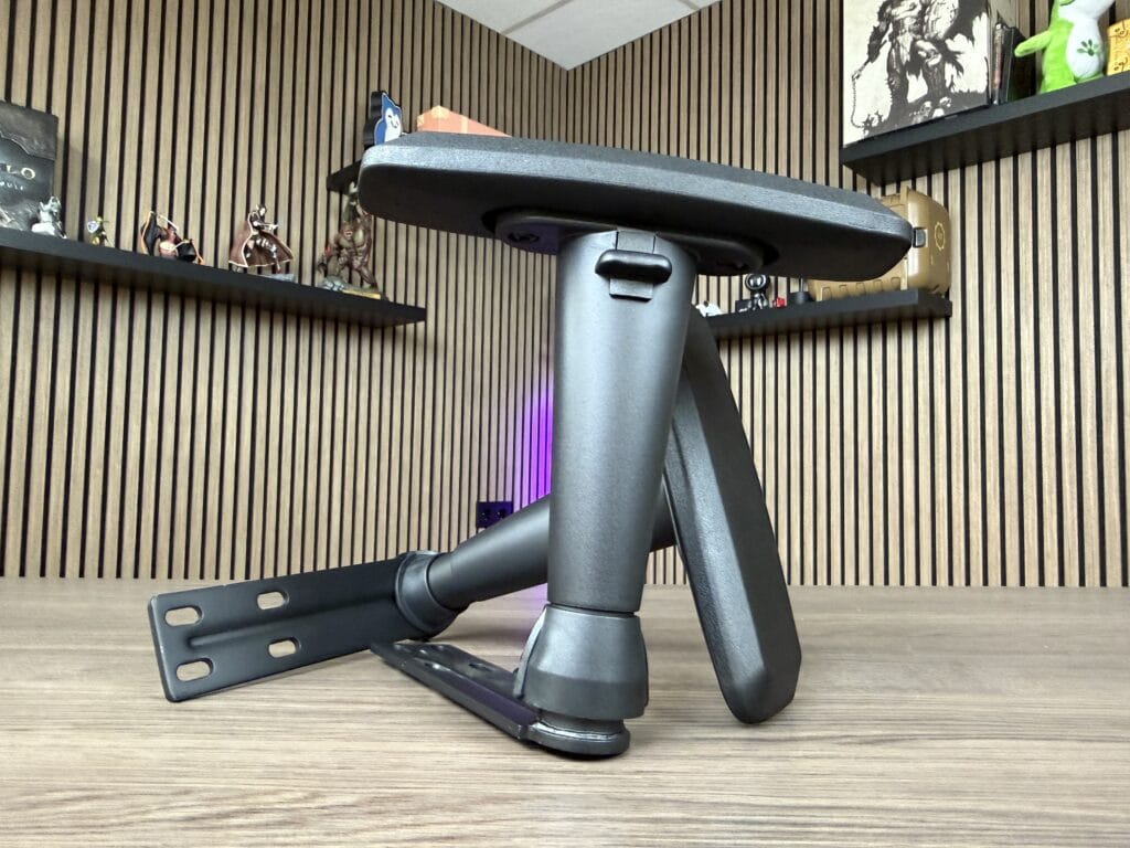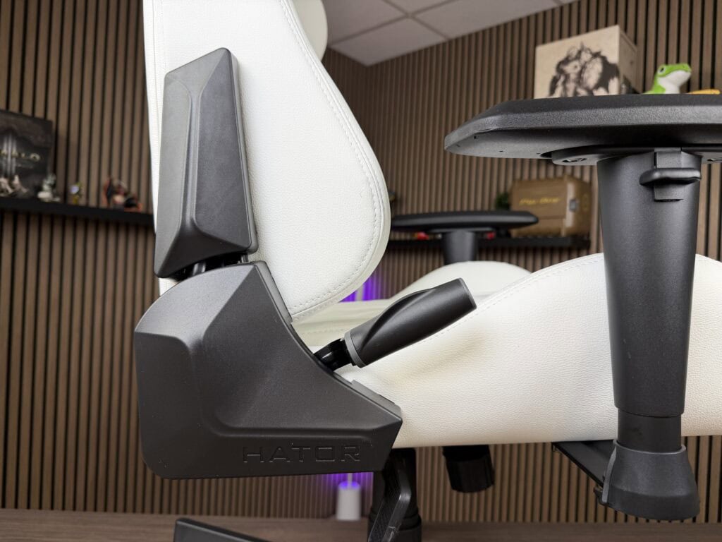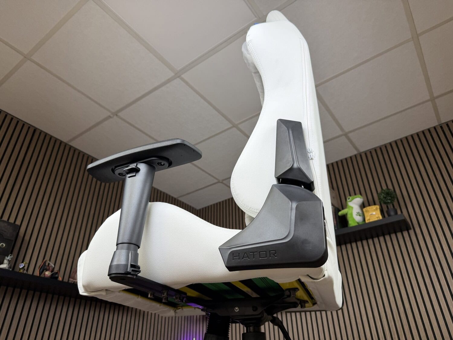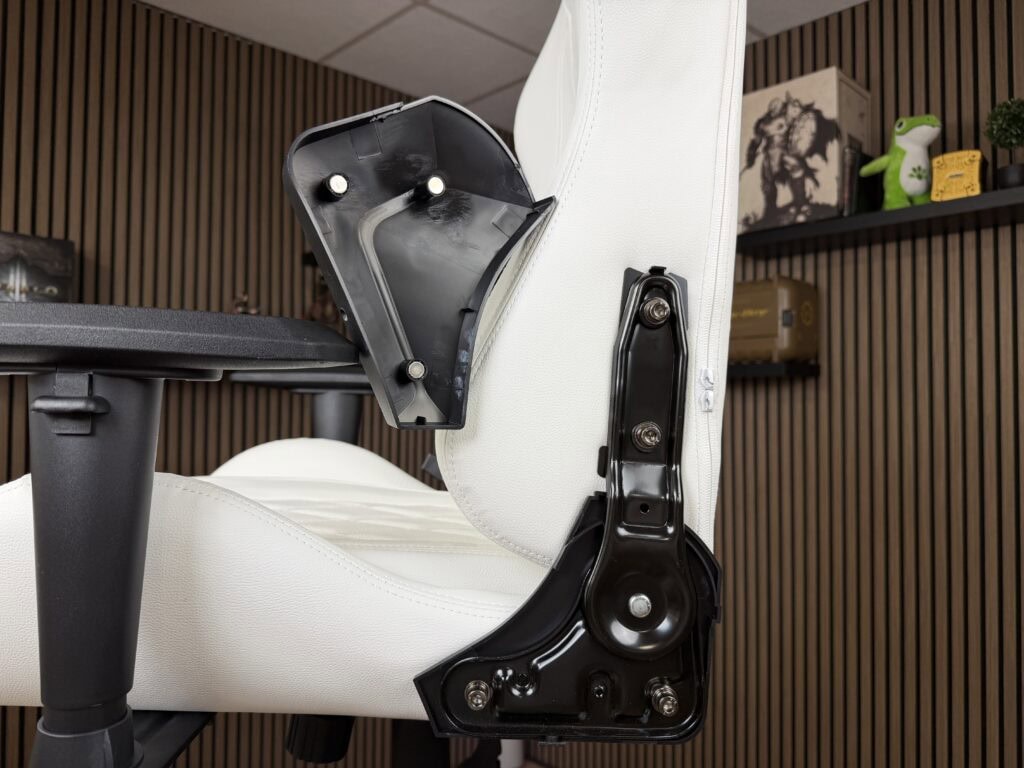 De kunststofkappen op de zijkant van de rugsteun sluiten magnetisch aan, zitten stevig en geven de stoel een deftig uiterlijk vanaf de zijkant. Ook tijdens gebruik blijven deze kappen netjes op hun plaats zitten. De armsteunen zijn redelijk rechttoe rechtaan qua ontwerp.