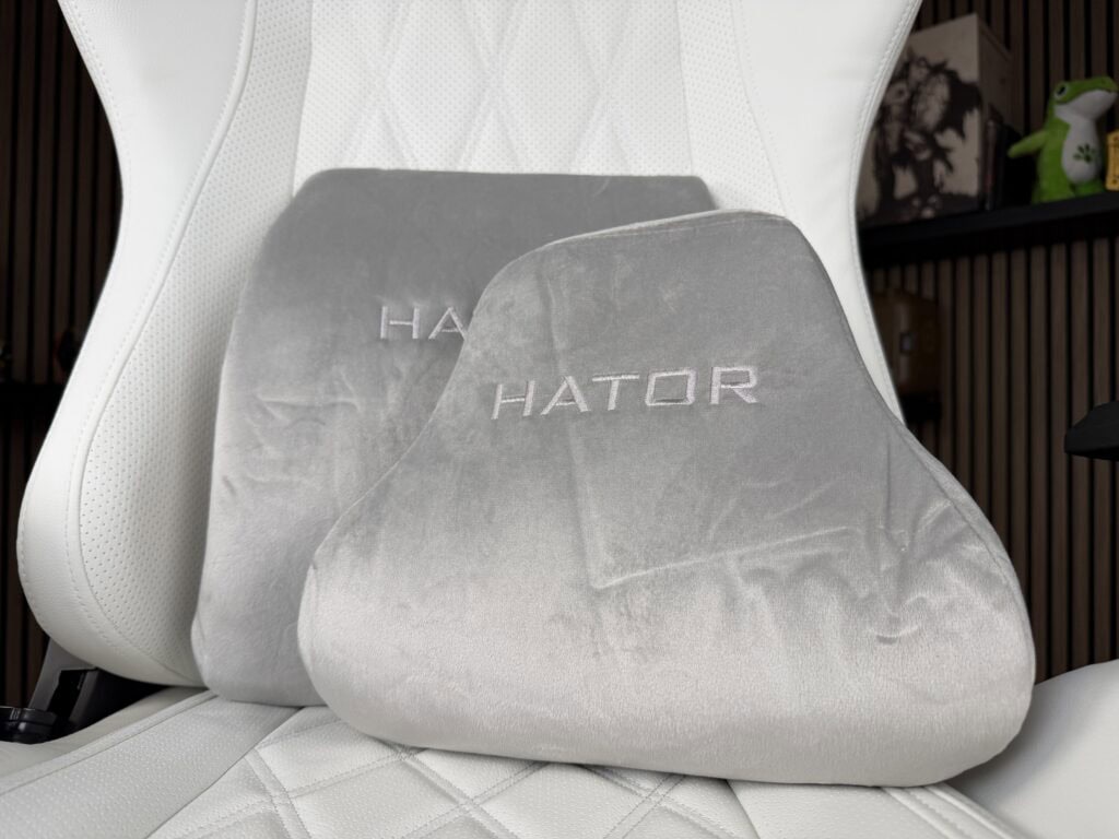 De meegeleverde kussens voor hoofd en rug zijn een meerwaarde voor de Darkside 3. Deze bestaan uit een zogenoemde “ChillFoam". Dit is een traagschuim dat zich zet naar het lichaam. De Darkside 3 heeft geen verstelbaar lendensysteem; echter, het rugkussen levert dit comfort. De kussens zijn magnetisch en zijn in positie te verstellen op de stoel. De fluweelzachte afwerking geeft de stoel eigenlijk nét dat stukje extra, waarmee Hator zich onderscheidt.