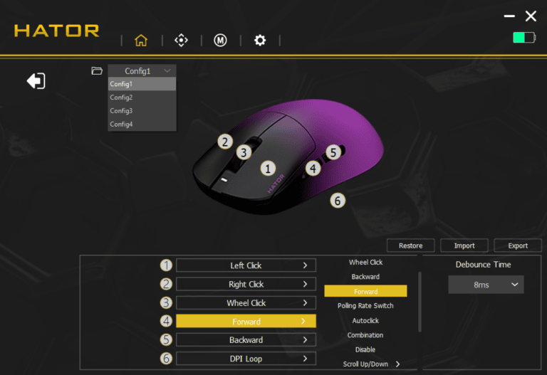 De Quasar 3 en 3S Ultima 8K Wireless zijn te beheren via de Hator MouseHUB-software. De software werkt goed qua functionaliteiten, maar oogt visueel wel wat basaal.