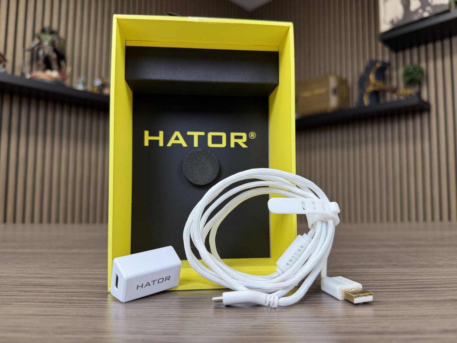 Dan hebben we nog de batterij. Hator doet hier gewoon goed wat het moet doen. Nee; er is geen fancy RGB-verlichting aanwezig, maar het volladen van je batterij in circa twee uur sluit aan op de fabrieksopgave. Alsmede een batterijduur van circa 90 tot 100 uur met de 2,4 GHz-verbinding. De meegeleverde 8K-dongle vereist een bekabelde verbinding tussen de USB-poort. Qua functie lever je niks in versus een compacte dongle, echter vinden we een directe/compacte dongle veelal toch wat chiquer ogen.