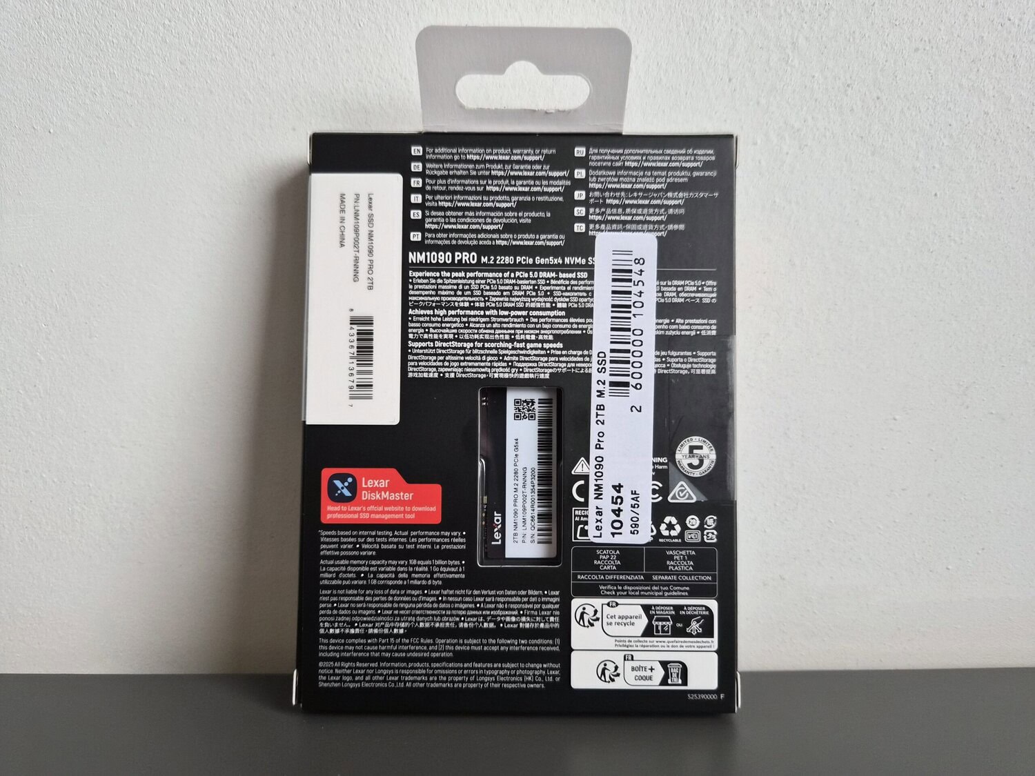 De Lexar NM1090 Pro 2TB SSD komt in een doos die kenmerkend is aan SSD’s. Op de doos vallen de snelheden te lezen, samen met het formaat van de SSD. Met 2280 heeft de Lexar NM1090 Pro het formaat van een standaard SSD.