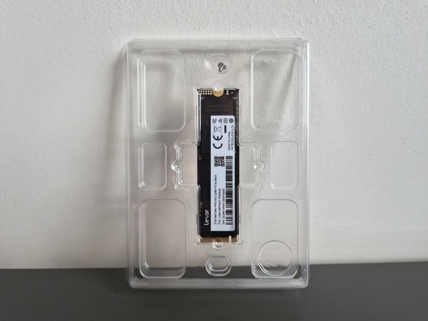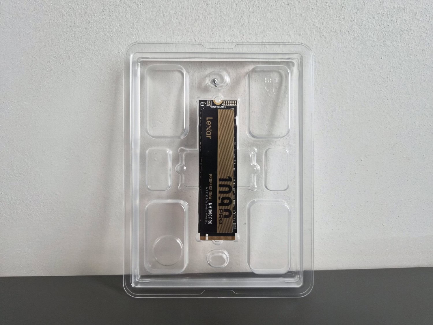 In de doos vind je een groot stuk plastic, met in het midden de Lexar NM1090 Pro. Samen met de “Lexar SSD gids voor Snelle Installatie en Garantie" ben je al haast klaar met de unboxing.