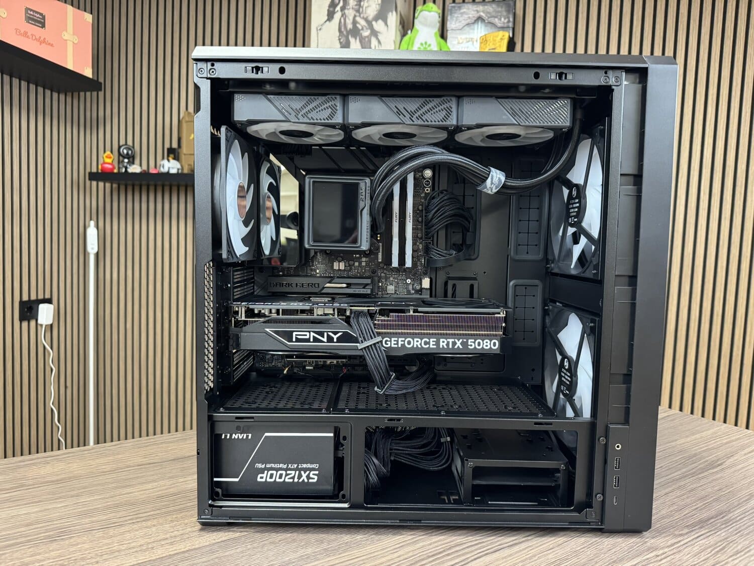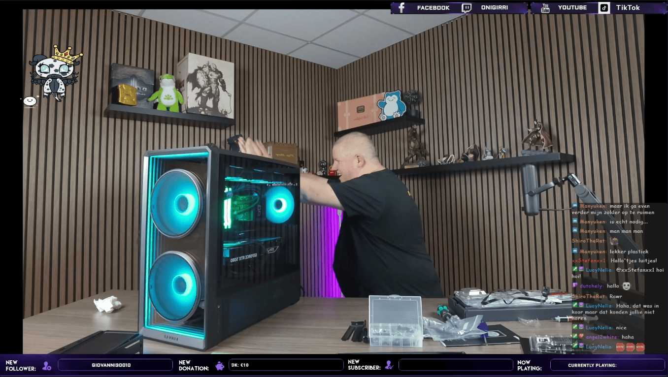 Het bouwen in de Lian Li Lancool 217 INF ging over het algemeen soepel, zeker als je het serieuze werk aan Dennis overlaat en zelf vooral commentaar levert vanaf de zijlijn. De behuizing biedt gelukkig genoeg flexibiliteit om ook tijdens een livestream zonder al te veel stress vooruitgang te boeken.